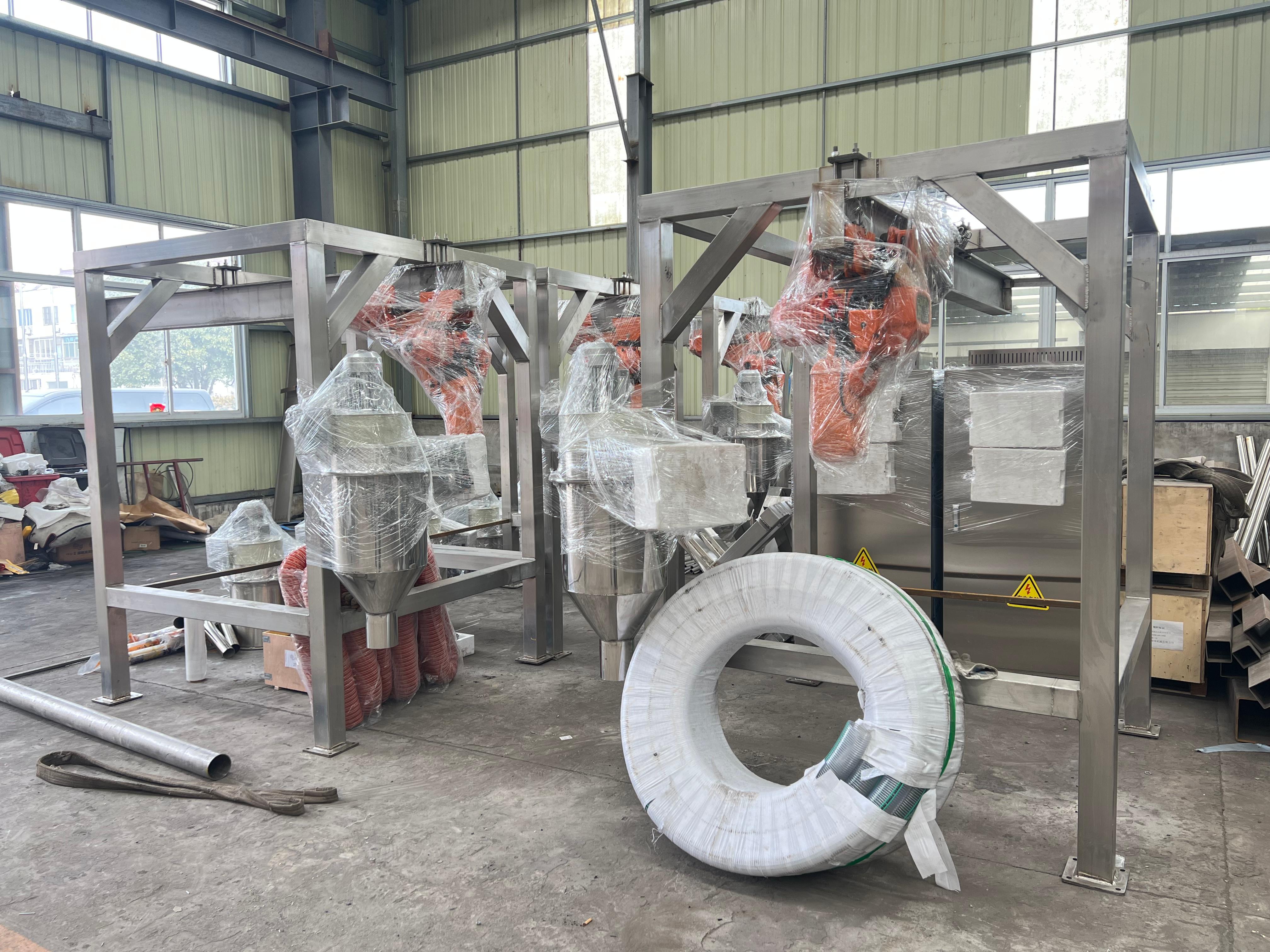 产品质量与性能方面:计量精度稳定,失重称、配料系统长期运行精度达标,误差控制在 ±0.5% 以内;设备耐用可靠,核心部件选用一线品牌,连续运行故障率低,适合 24 小时生产线;无尘/防爆达标,粉体输送、无尘投料、防爆机型无泄漏、防静电、安全合规;定制化适配强,针对造粒、密炼、锂电、食品等场景做非标设计,方案落地性好、贴合生产流程。