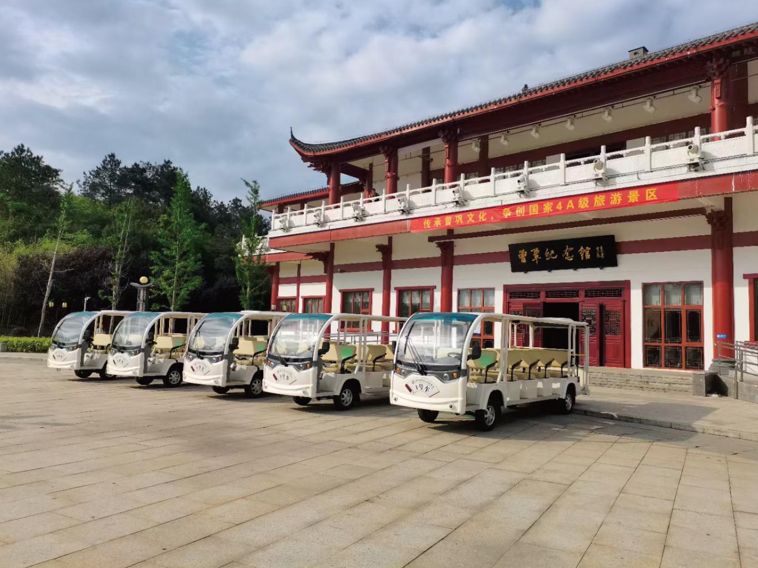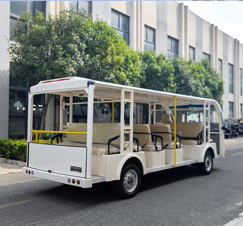 在产品性能上,电动观光车具有诸多优势。动力性能方面,采用高效静音电机,起步平稳柔和、爬坡动力充足,续航持久稳定,提速顺畅无顿挫。操控制动方面,转向轻盈灵活,制动灵敏可靠,驻车安全稳定,转弯半径小,园区窄路、弯道通行适配性强。续航方面,配备大容量高品质动力电池,循环寿命长,充放电稳定,低温环境续航衰减小,日常满载续航满足景区高频接驳需求。舒适适配方面,底盘减震效果好,驾乘平稳舒适;车身采光视野开阔,座椅贴合人体工学,全天候户外防晒、防雨、耐候性强。