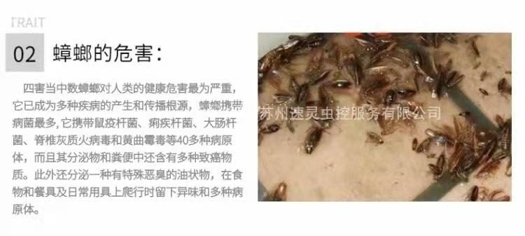 苏州速灵虫控服务有限公司凭借其专业的服务、良好的口碑和完善的售后,成为苏州地区虫害控制服务的较好选择之一。如果您有除灭老鼠、苍蝇、蚊蝇、蚊子、蟑螂等虫害的需求,不妨考虑一下这家机构。