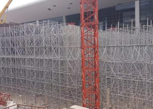 在产品质量和性能方面,公司主营的盘扣式脚手架严格按JGJ231—2010国标生产,核心构件采用Q345B低合金钢管(φ48/φ60、壁厚3.2mm),强度远超传统Q235材质,立杆承载力大幅提升。圆盘为φ135mm、厚10mm冲压/锻造件,8孔设计适配多向连接;构件经严格检测,焊缝饱满、尺寸精准,抗变形、耐磨损,适配长期租赁循环使用。其承插自锁结构,搭拆快速、节点稳固;斜拉杆形成空间桁架,整体刚度强、抗倾覆性好;适配桥梁、高架、厂房等重载场景,安全系数高。