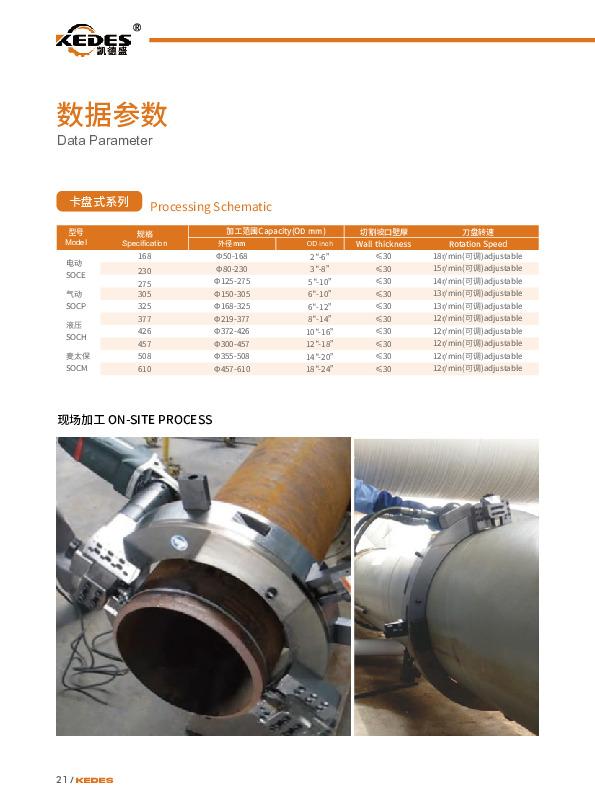 除了上述主营产品,深圳凯德盛机械设备有限公司的其他产品系列也各有特点。切管机系列包含行星式、台式机型,行星式切管机切割速度可按管材材质调节,刀片通用且更换便捷,管径调节可在几秒内完成,国内同类机械(含进口品牌)市场占有率高;台式机型采用机械式棘轮进刀,支持切断与坡口同步加工,节省工序,加工壁厚达38mm,适配不锈钢、碳钢等管材。