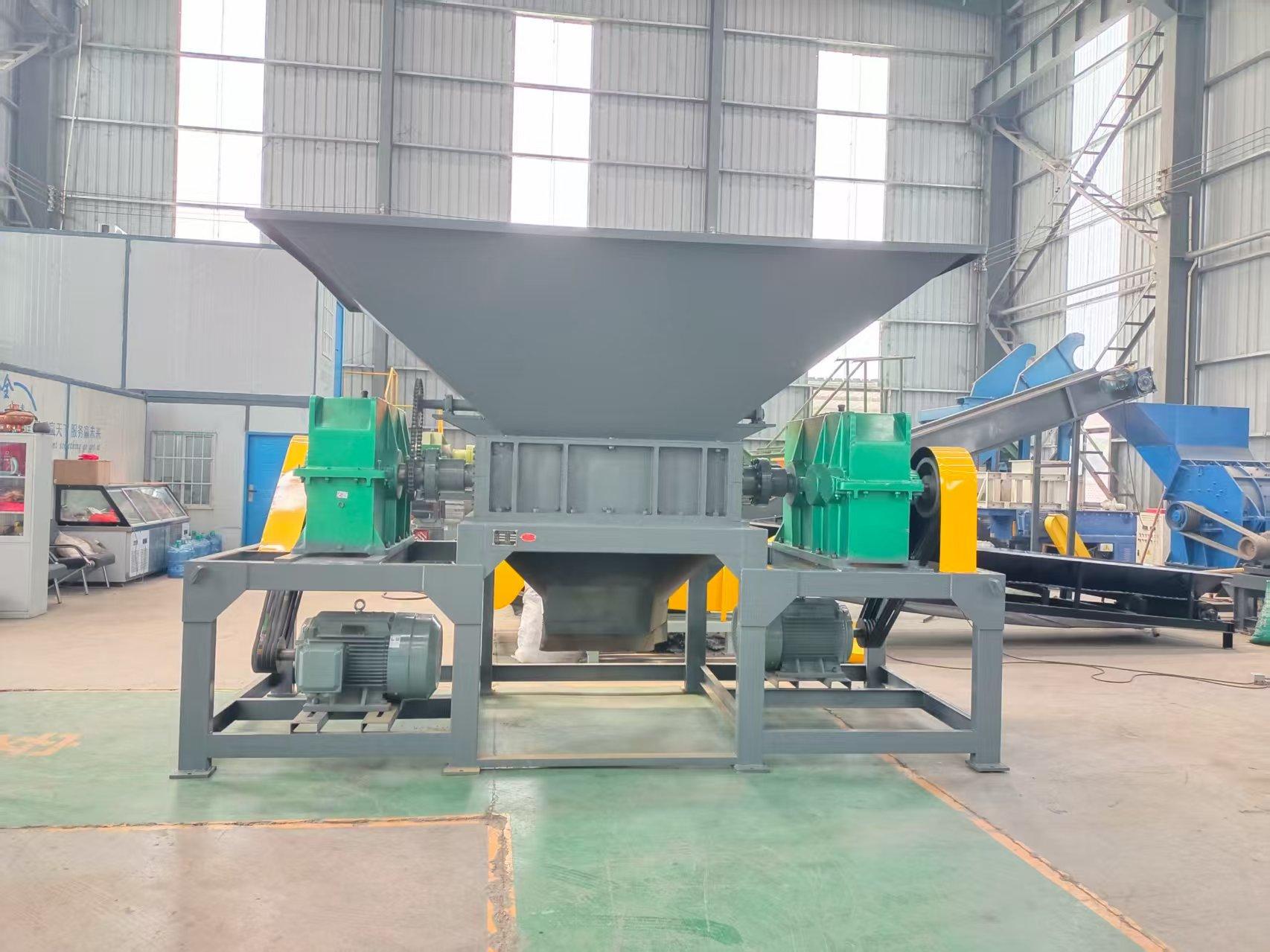 **金属撕碎机**:可处理多种金属材料,如金属粉末、金属边角料等。通过强大的撕碎能力,将金属材料加工成易于处理和再利用的形态,广泛应用于冶金等行业。