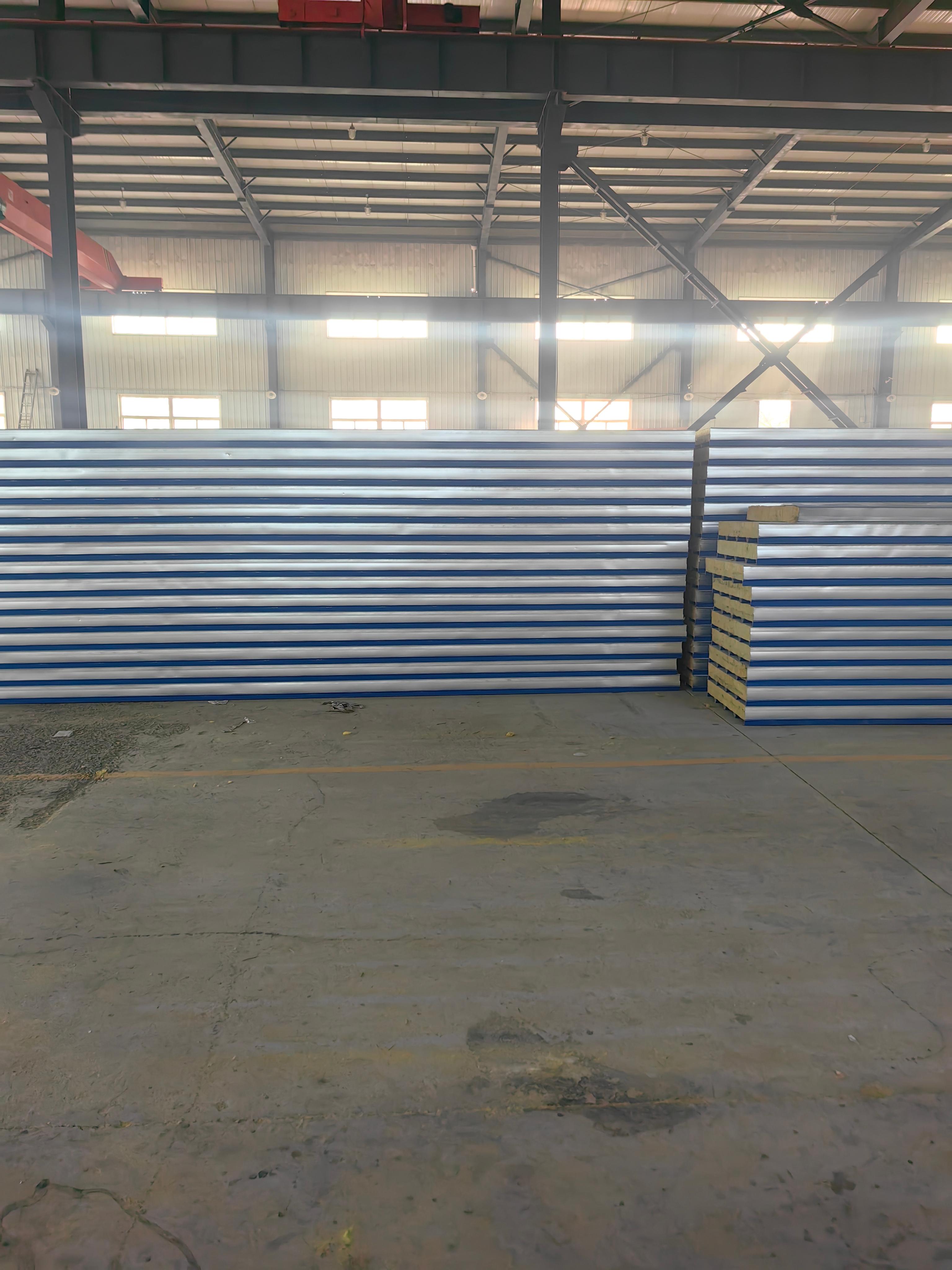 企业拥有国内优质的电脑数控全自动彩钢复合板生产线及数条彩钢压型板生产线,主要生产金属隔热夹芯板(EPS、岩棉、玻璃棉、聚氨酯)、各种彩钢压型复合板、组合楼板、仿古琉璃瓦、CZ型钢、轻钢结构等产品。这些产品的各项技术性能均符合相关标准,并且具有色彩鲜艳、造型美观流畅、彩涂坚固耐久、使用寿命长、耐腐蚀、防水性好等特点。