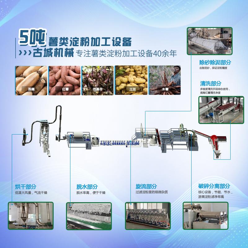 设备具有诸多核心优势。它适配新鲜红薯、红薯薯渣等多种原料,同时可兼容土豆、木薯等其他薯类加工,实现一机多用,提升了设备利用率。采用不锈钢材质,耐腐蚀、易维护、使用寿命长,加工过程无二次污染。在工艺方面,严格遵循各工序核心原理。清洗环节可彻底去除红薯表皮泥沙及表皮,保障淀粉品质;破碎环节可破坏红薯组织结构,释放游离淀粉,提升出粉率;筛分环节以水为介质,分离薯渣与淀粉浆水;除沙精化采用旋流除沙原理,结合比重分离,去除泥沙杂质并精制淀粉;浓缩环节分离淀粉与水、蛋白及细小纤维,提升淀粉浓度;脱水环节去除浓缩/沉淀后淀粉多余水分,为干燥做准备;干燥采用气流干燥工艺,瞬间完成干燥,避免淀粉糊化或降解,保障淀粉品质。整体淀粉提取率高,成品色泽洁白、细腻,符合食用级标准,适配食品加工、餐饮供应链、批量零售等多领域B端应用场景。