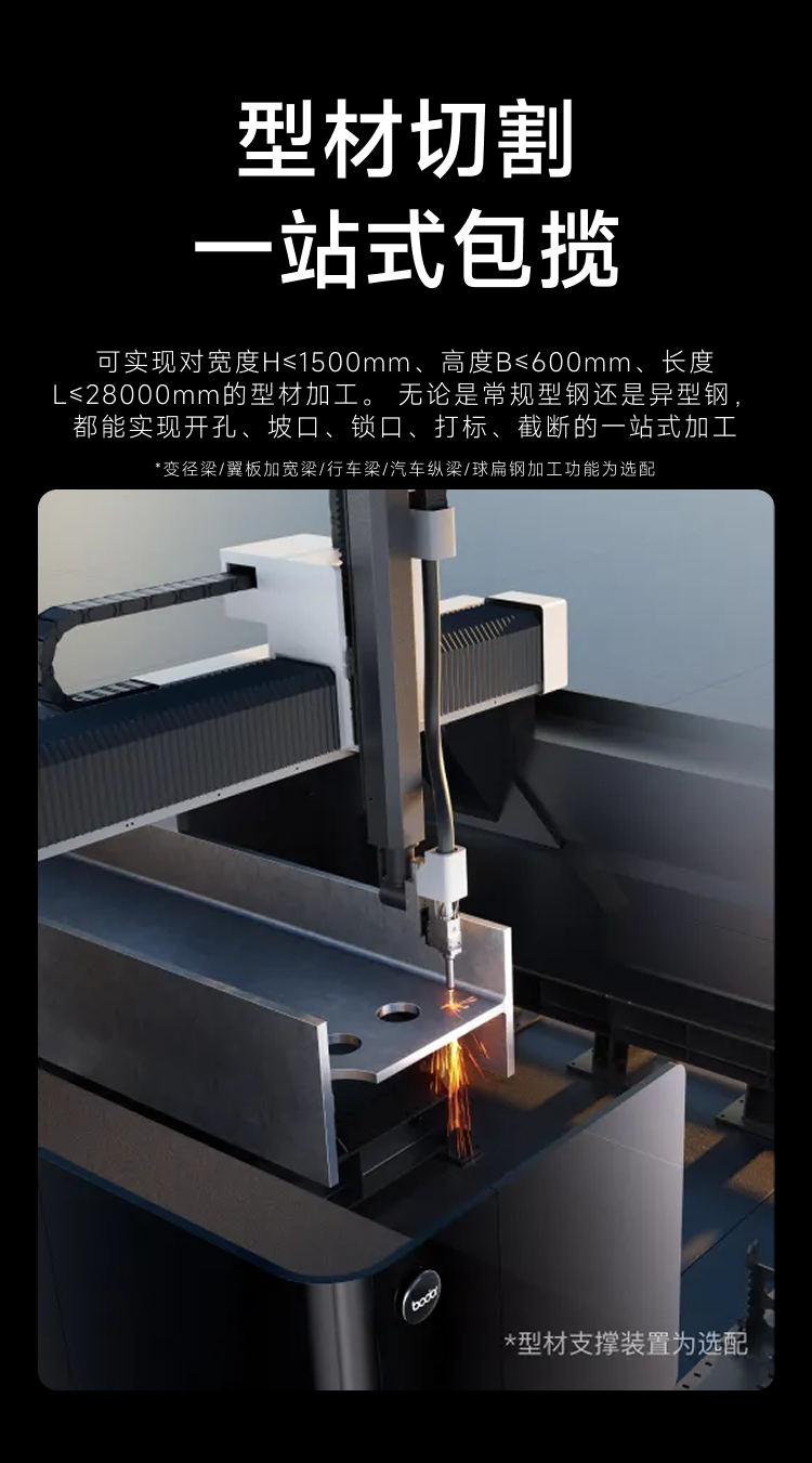 邦德激光聚焦激光设备加工领域,坚持自主品牌标准,以核心部件自研自产夯实企业核心竞争力。推出覆盖1500W到200000W功率段的板材、管材、型材、板管一体激光切割机、自动化设备,以及激光焊接机等不同类型产品。同时开辟行业新品类——激光扫描切割机,实现高反材料的批量切割。目前,邦德激光已为新能源、汽车制造、钢结构、船舶、工程机械等数百个行业提供全面专业服务,产品远销全球180多个**和地区。