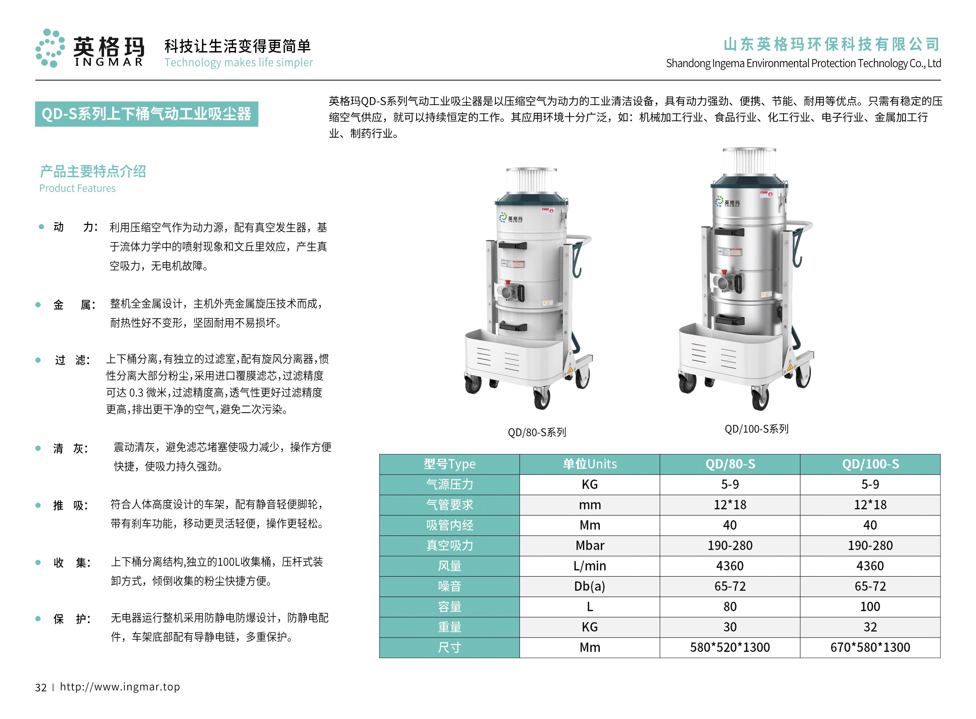 山东英格玛环保科技有限公司主营多种类型的吸尘器产品,涵盖了工业用吸尘器、水浴式吸尘器以及镁铝钛粉末吸尘器等。其工业用吸尘器吸力强劲,能够快速有效地吸除工业生产过程中产生的各种粉尘和废弃物。据测试数据显示,该系列工业用吸尘器每分钟的吸风量可达[X]立方米,能够满足不同规模工业生产的清洁需求。