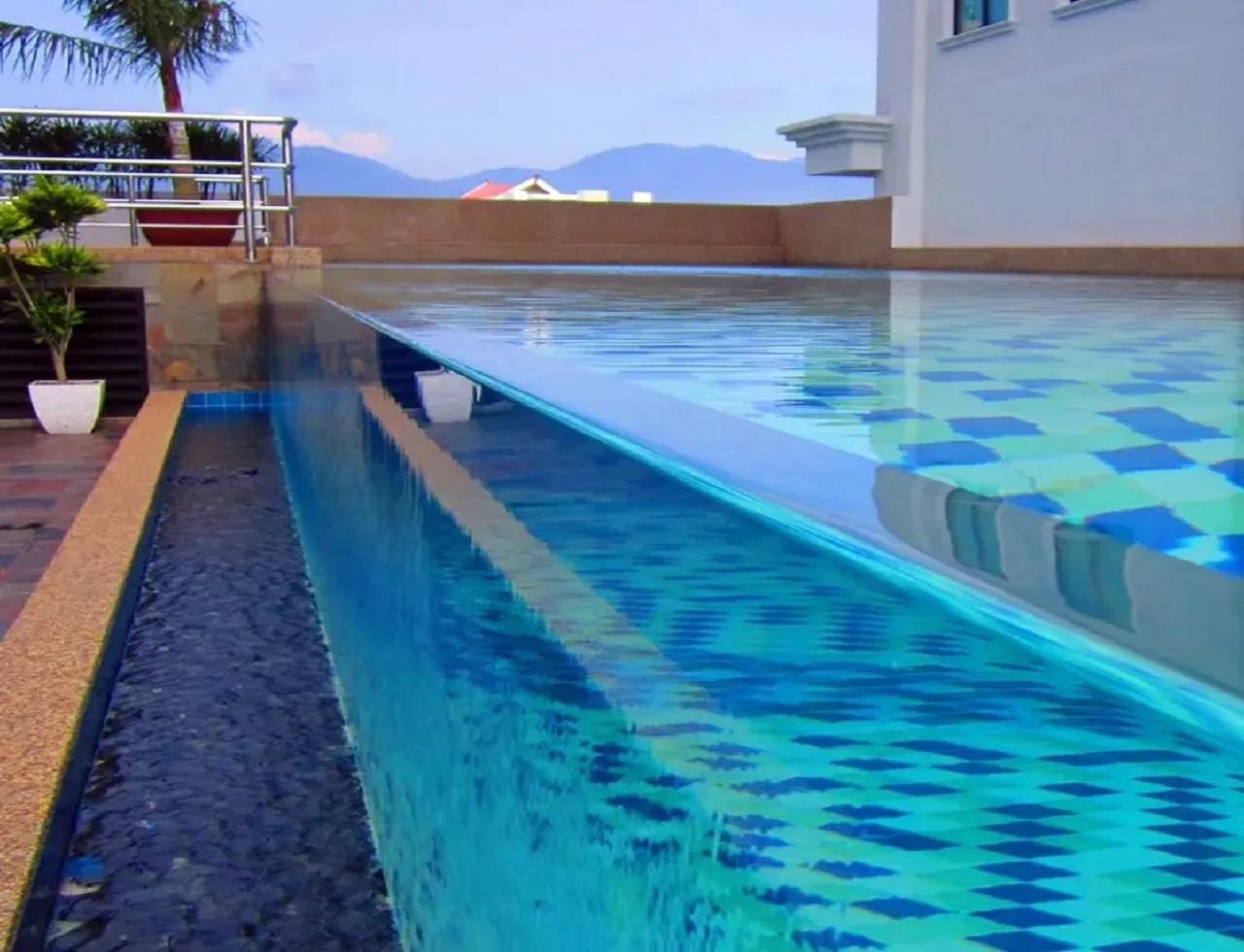 水质方面也是该公司产品的一大亮点。由于采用了逆流设计的水循环方式,水从泳池底部涌起,漂浮物从水池表面溢出,回到均衡水箱经过滤再回到泳池。循环的水从溢出部分获取,所以在底排里不会有安全隐患。并且,泳池是满水设计,池壁不会有污垢,减少了细菌滋生的环境,能让泳池的水长时间保持干净、无污染。