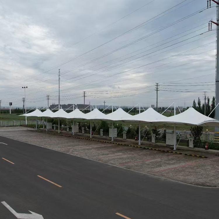 张拉膜车棚产品同样具有显著的优势。它采用先进的张拉技术,使得膜结构更加稳固,能够承受较大的风力和积雪压力。透光节能的设计让车棚内即使在白天也无需额外照明,既环保又经济。而且,张拉膜车棚的造型可以根据建筑风格和客户喜好进行多样化设计,满足不同客户的个性化需求。