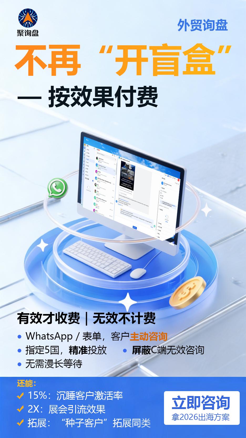 | 计费模式 | 按“发送量/展现量/年费” (不管结果) | 按“有效询盘” (无效不计费,风险共担) |