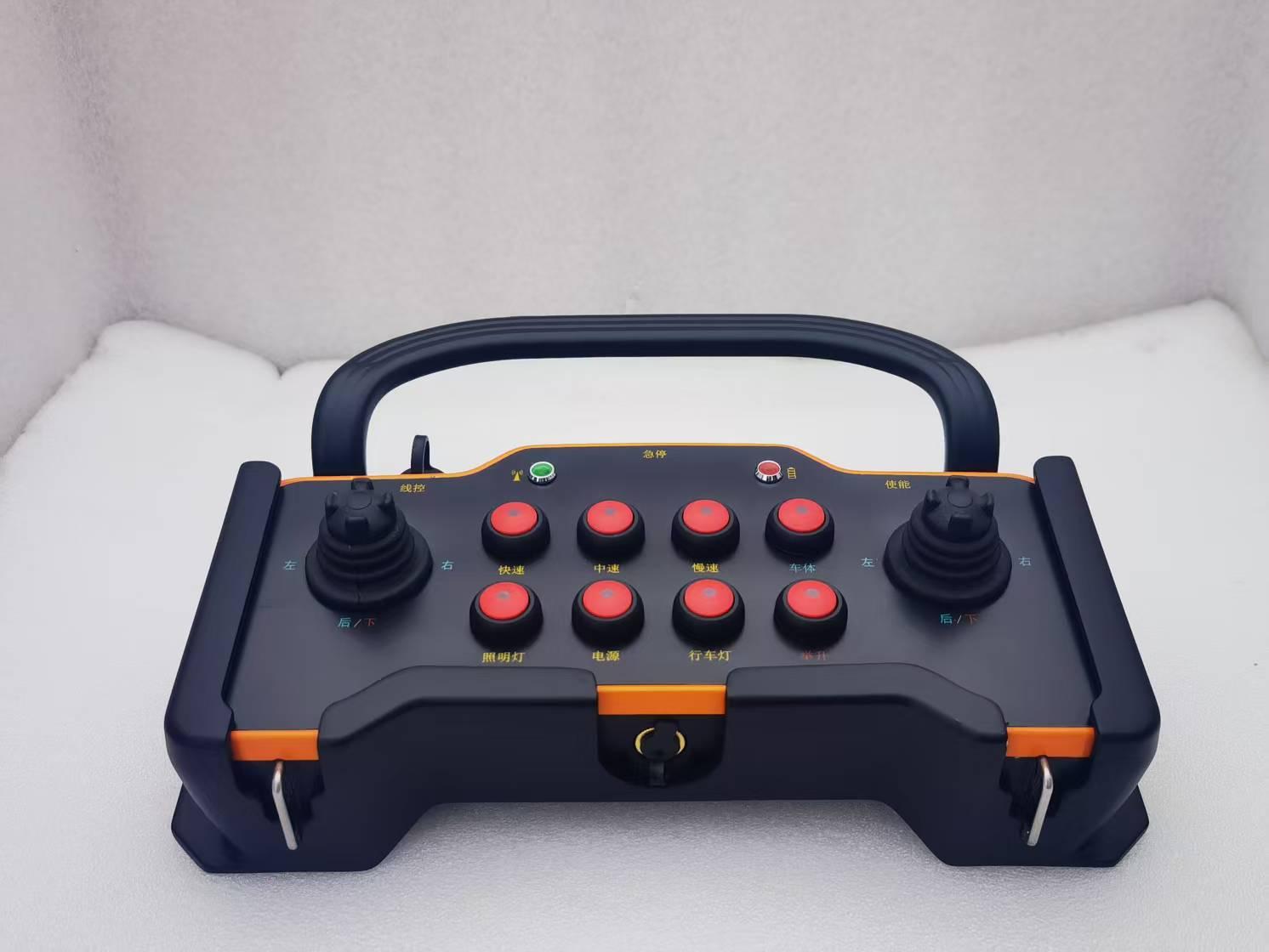 其产品质量与性能表现十分出色。在设计上,整机外壳采用高强度工程塑料并结合内部多重支架结构,全密封机身,防水防尘耐冲击,机身护栏弧度符合人体工学,搭配背带方便操作,内部隐匿式高增益天线不易损坏;遥控信号响应为毫秒级,即发即达,数据传输采用前向纠错和调频机制,抗干扰能力强;具备开机自检功能,摇杆及开关可配置零位保护,还有主动急停及被动急停功能;可选装显示屏实时反馈工作状态,可加装图传视频监控器,输出形式多样,数据支持多种通讯协议,可实现多对一、一对多功能,还能定制大于1KM超远距离信号传输。