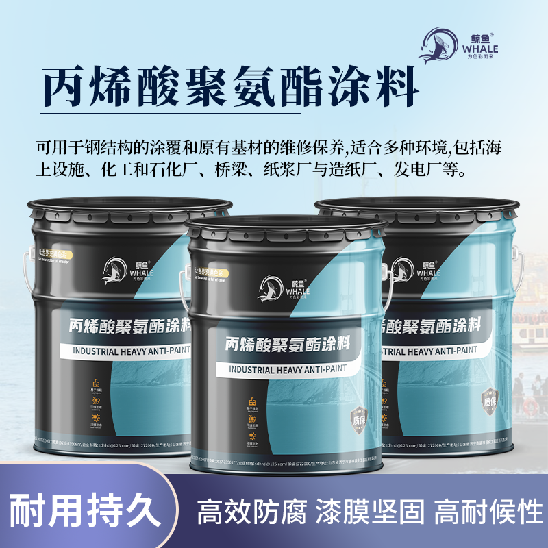 产品质量和性能上,山东鲸鱼新材料有限公司聚焦重工业防腐,以环氧富锌底涂、环氧云铁中涂、丙烯酸聚氨酯防腐涂料为核心,构建了严苛质控体系。其中丙烯酸聚氨酯防腐涂料作为耐候装饰终端,具有显著优势。它人工老化1000小时无粉化,耐酸碱腐蚀,漆膜硬度≥F,光泽度高、色彩丰富。施工特性上,25℃表干≤2h、实干≤24h,混合比例4:1,施工高效,适用于户外钢结构、桥梁、机械设备等耐候装饰需求场景。并且该公司的 “底 - 中 - 面” 协同防护体系,能实现10 - 15年长效防腐,层级互补,稳定兼容,适用于石化、火电、风电、港口机械等重工业全领域。