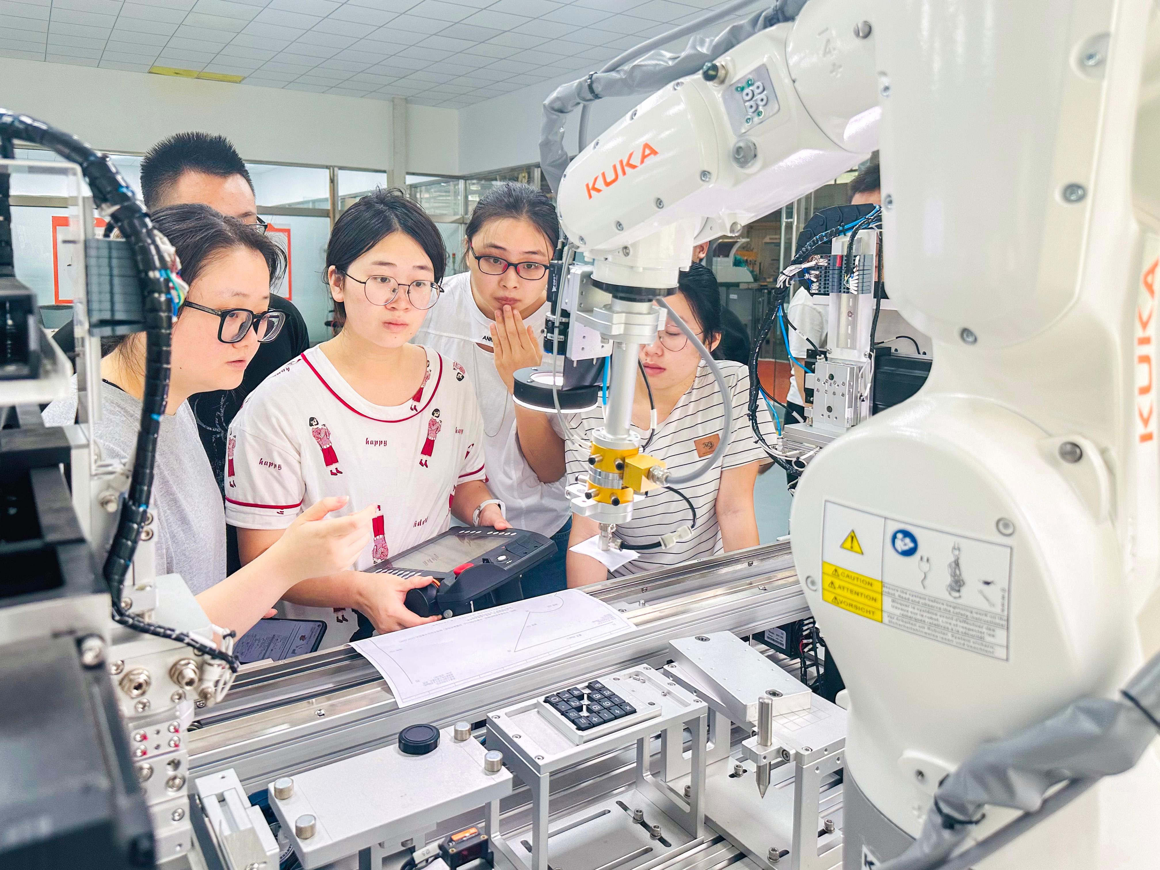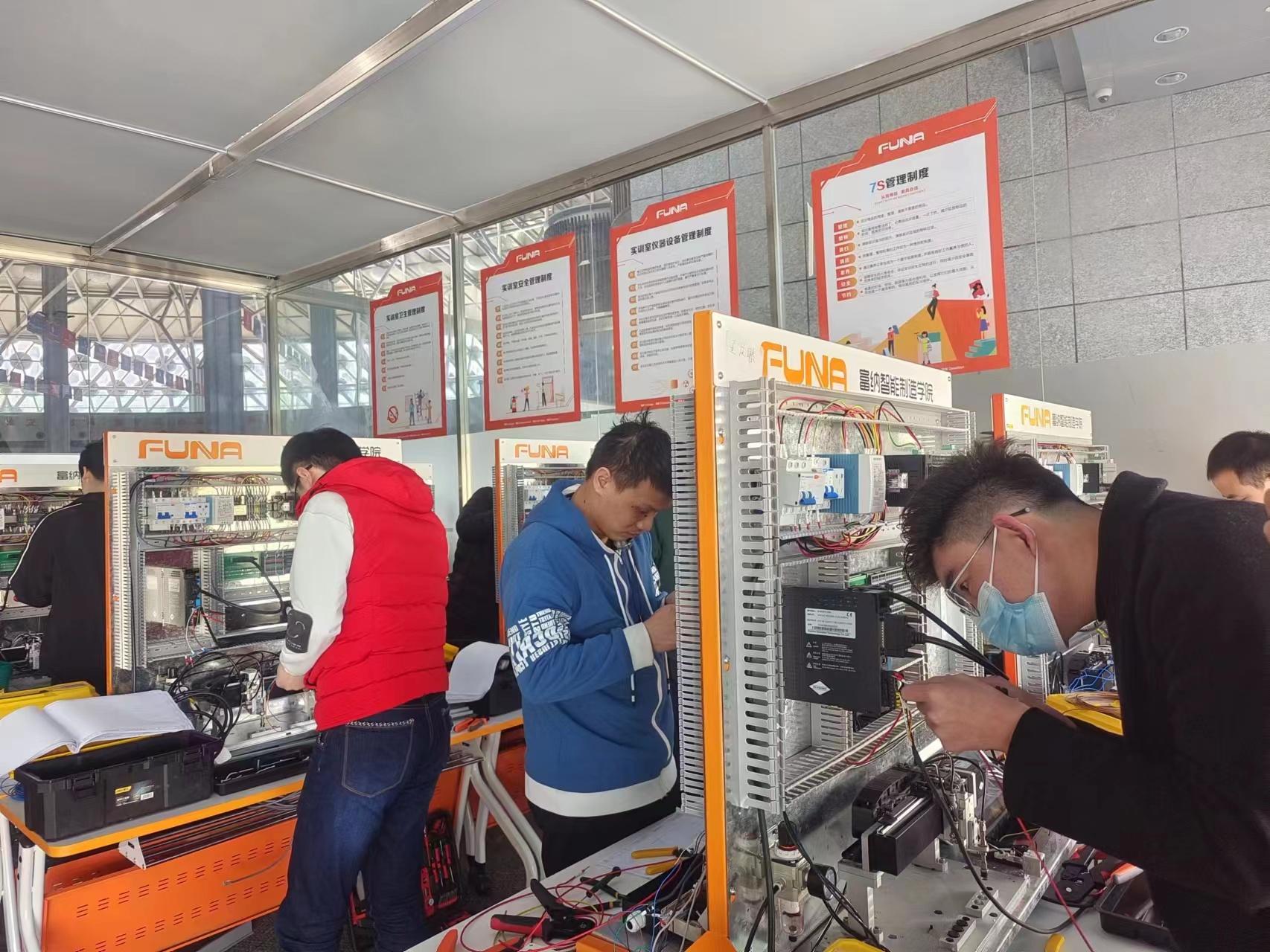 富纳的课程体系深度融合了多个领域。包括电气设计(含Eplan电气画图)、PLC编程、机械设计(如SolidWorks)、工业机器人(涵盖KUKA、EPSON、ABB、Fanuc等主流品牌应用与集成)、机器视觉、上位机开发及智能进阶技术(如深度学习与AI在工业场景的应用)。同时,高度重视实操与工程实践,开设从电气装配、低压电工、电工运维到电气调试、售后调试及售后运维的完整技能链培训,确保学员不仅能掌握前沿技术工具,更能胜任现场安装、调试与持续运维等关键岗位。
