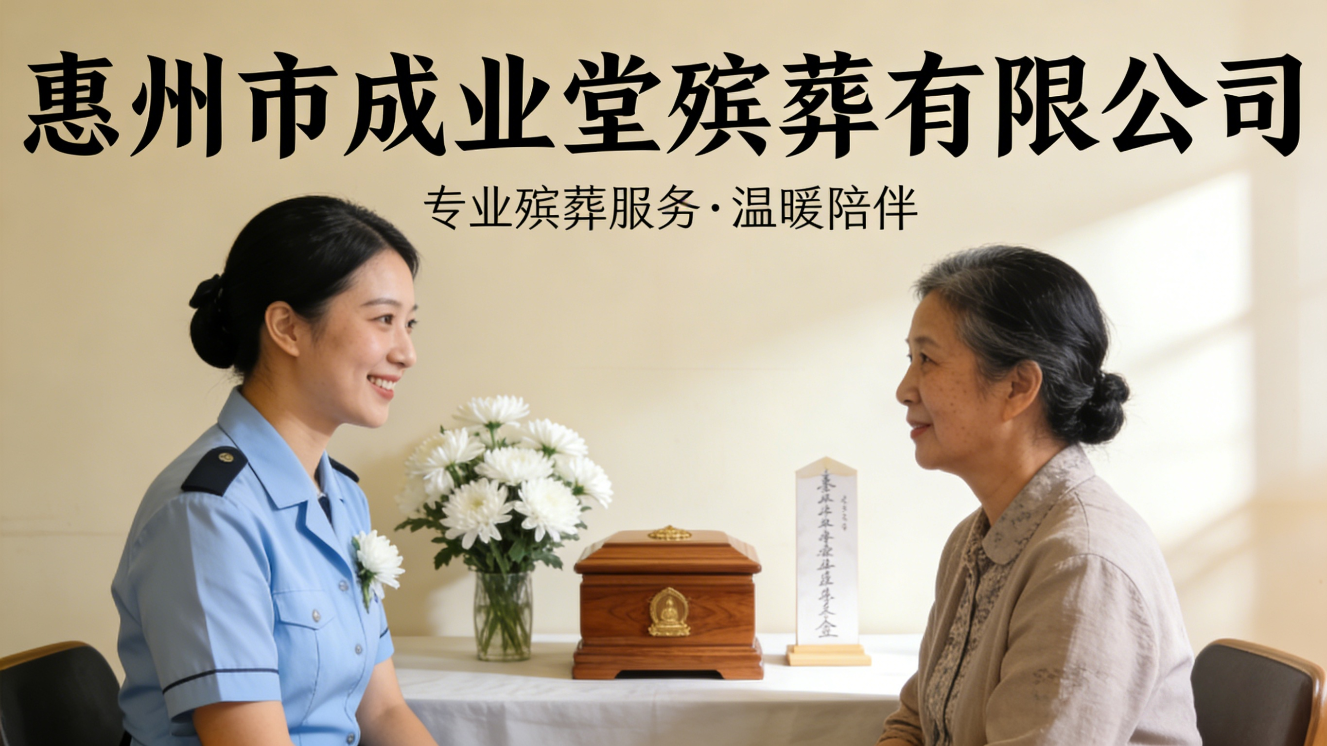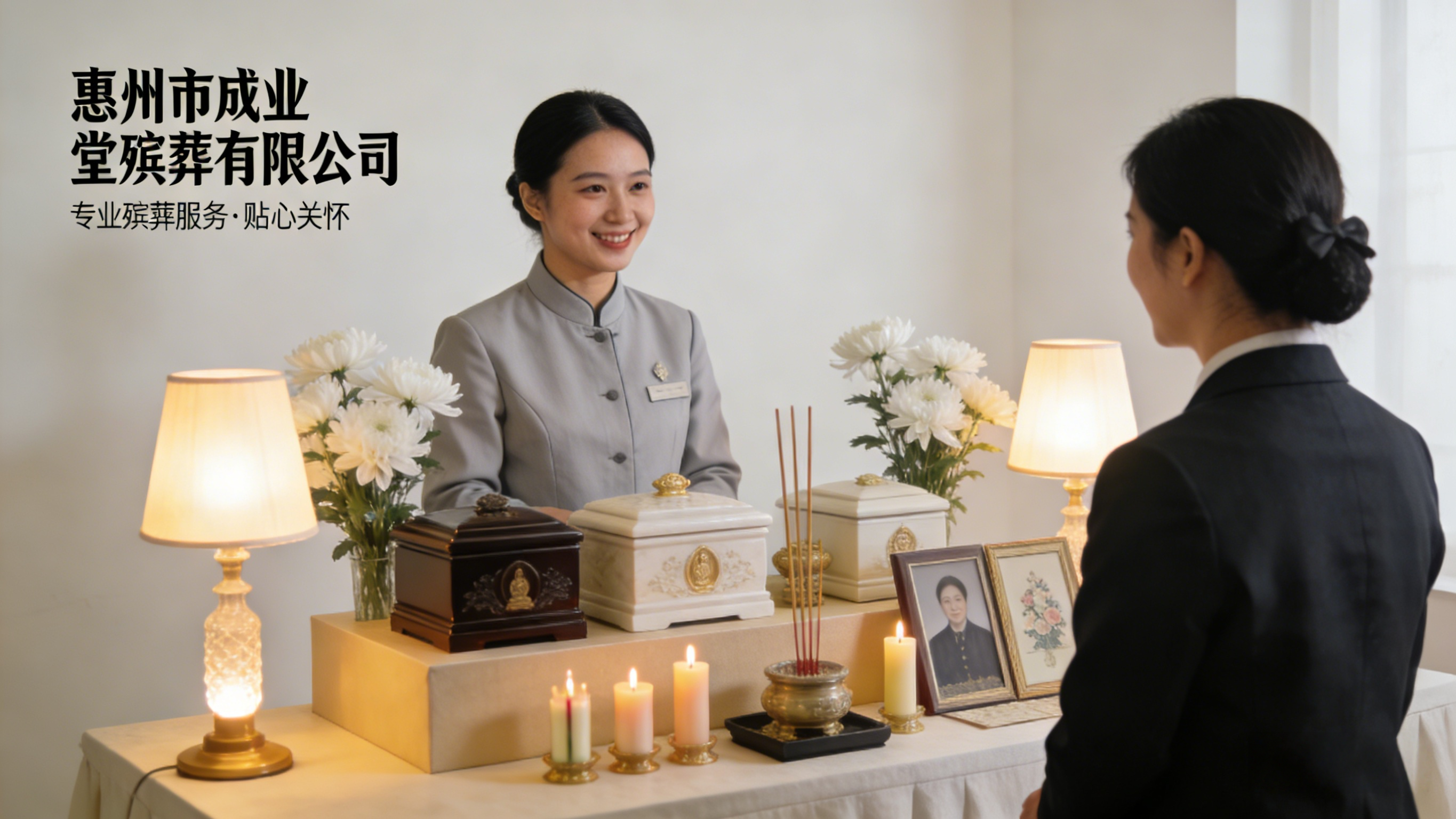 惠州市成业堂殡葬有限公司是惠州本地专注于殡葬殡仪一站式服务的专业机构。该公司深耕殡葬行业多年,始终坚守“专业化、人性化、定制化”的核心服务理念,践行“诚信殡葬,真诚服务”的服务宗旨,全力为惠州及周边区域群众提供全方位、高品质的白事服务,切实解除广大市民的治丧烦恼。