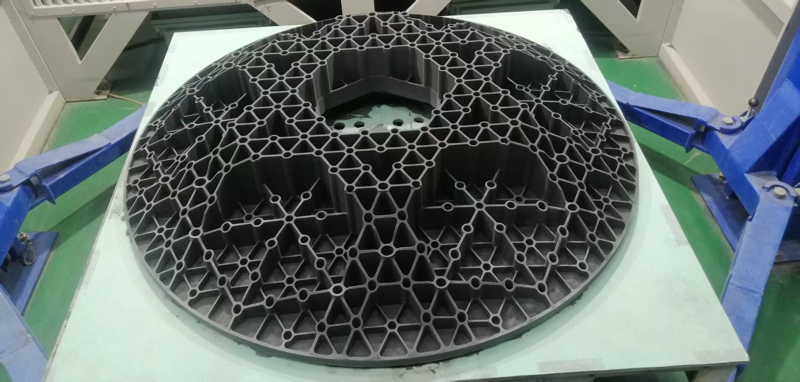 2. 碳化硅空间反射镜:密度≥2.95g/cm³,上限耐受温度1400℃,工作温度1350℃,机加后外形尺寸偏差:≤±0.1mm,机加后表面粗糙度Ra≤0.1μm,上限尺寸可达Φ1600mm。