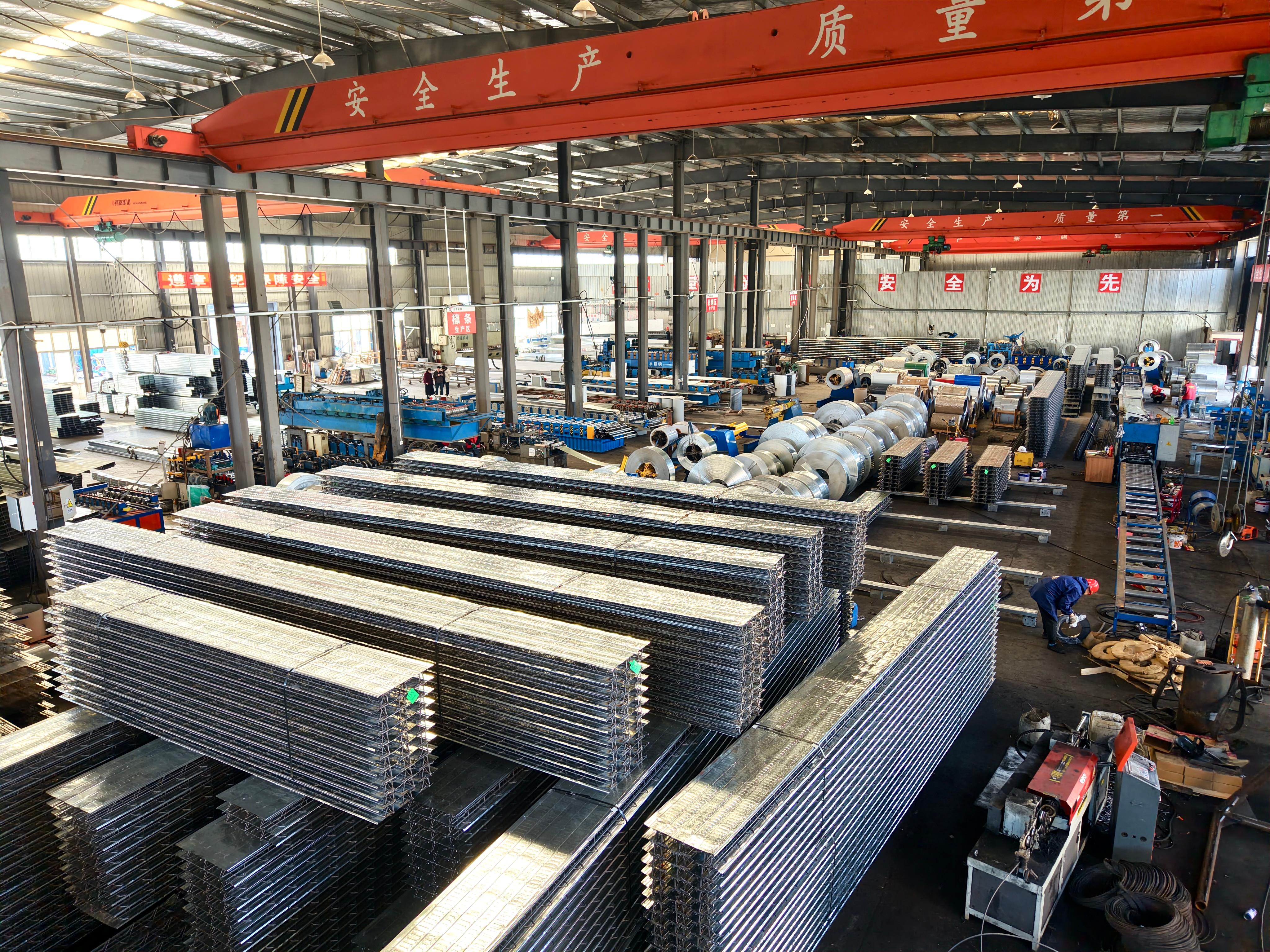 该公司坚持技术创新,拥有多条自动化楼承板、金属屋面等先进生产线,设备齐全,专注钢结构及彩钢围护材料的研发与生产,持续推出适配市场的新型产品。公司在武汉、江西设有两大源头生产基地,厂房面积达4000平方米,年产能为1万吨(产值)。