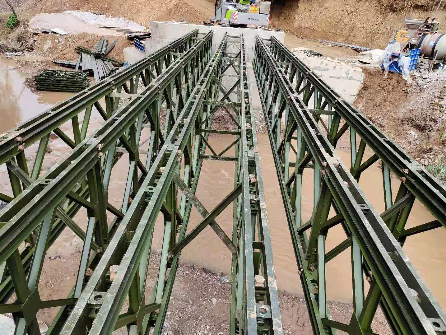 公司的产品凭借模块化、轻量化、拆装便捷、承载稳定的核心特性,严格契合各类工程施工需求,广泛应用于应急救灾、交通工程、市政水利工程、危桥加固、野外作业等多个主流领域。在应急救灾领域,贝雷桥、钢便桥、贝雷片等产品可在短时间内就地拼装完成临时通道,保障抢险人员、救援物资的顺利运输,以及受灾群众的安全转移;在交通工程建设领域,可作为临时绕行通道或施工便道,满足不同跨径、荷载需求;在市政水利工程领域,可作为临时通道,连接两岸施工区域,方便施工设备和建筑材料的运输。