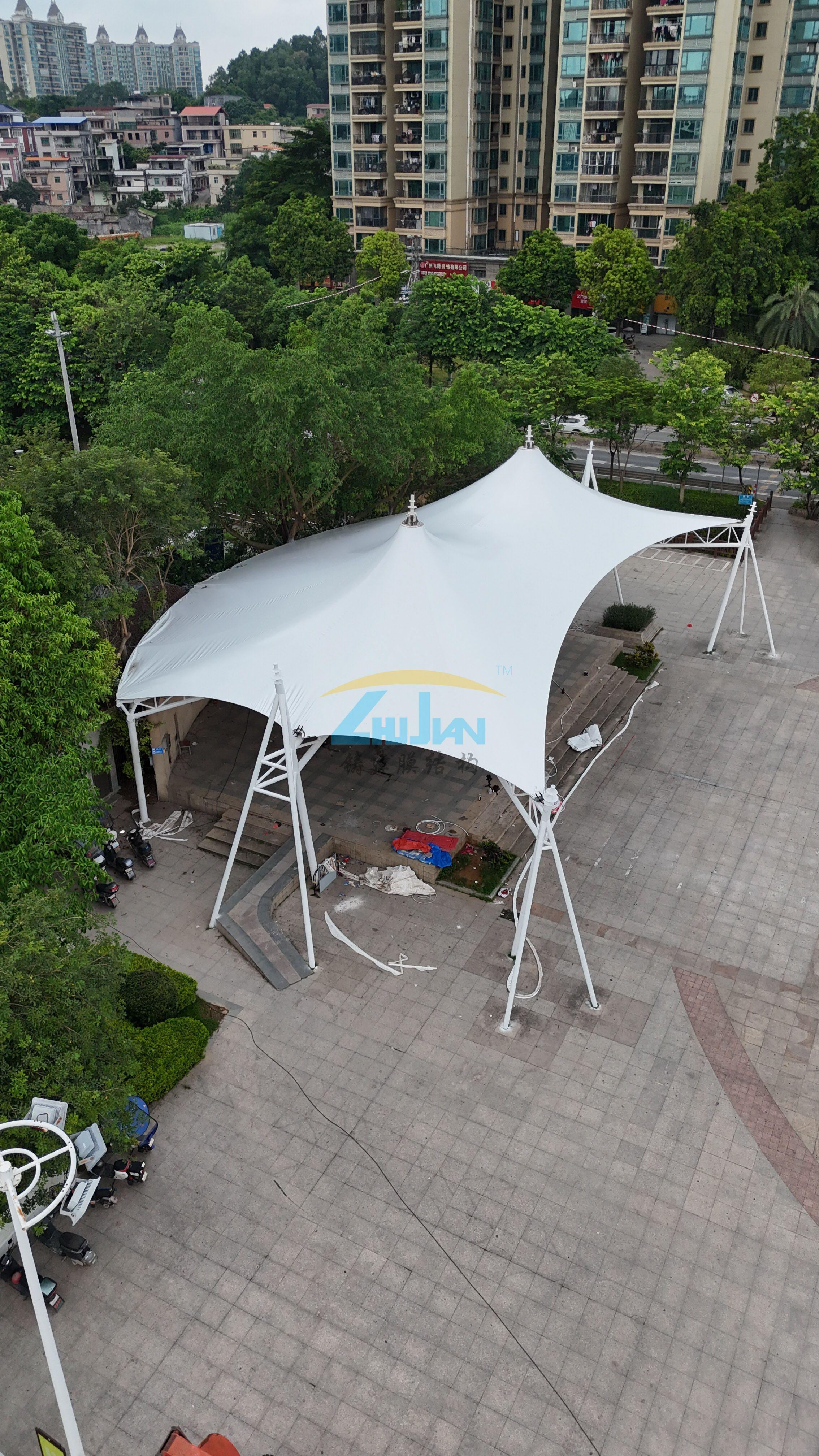 在文旅景观领域,广州铸建膜结构工程有限公司的产品适配景区、城市公园、休闲广场、文旅小镇等场景。例如,为景区打造的异形景观棚、张拉膜景观亭、网红打卡膜结构建筑、滨水休闲膜结构廊道等产品,兼顾了造型设计与户外使用需求,贴合了文旅场景的颜值与功能要求,成为了各地文旅场景的特色配套设施。