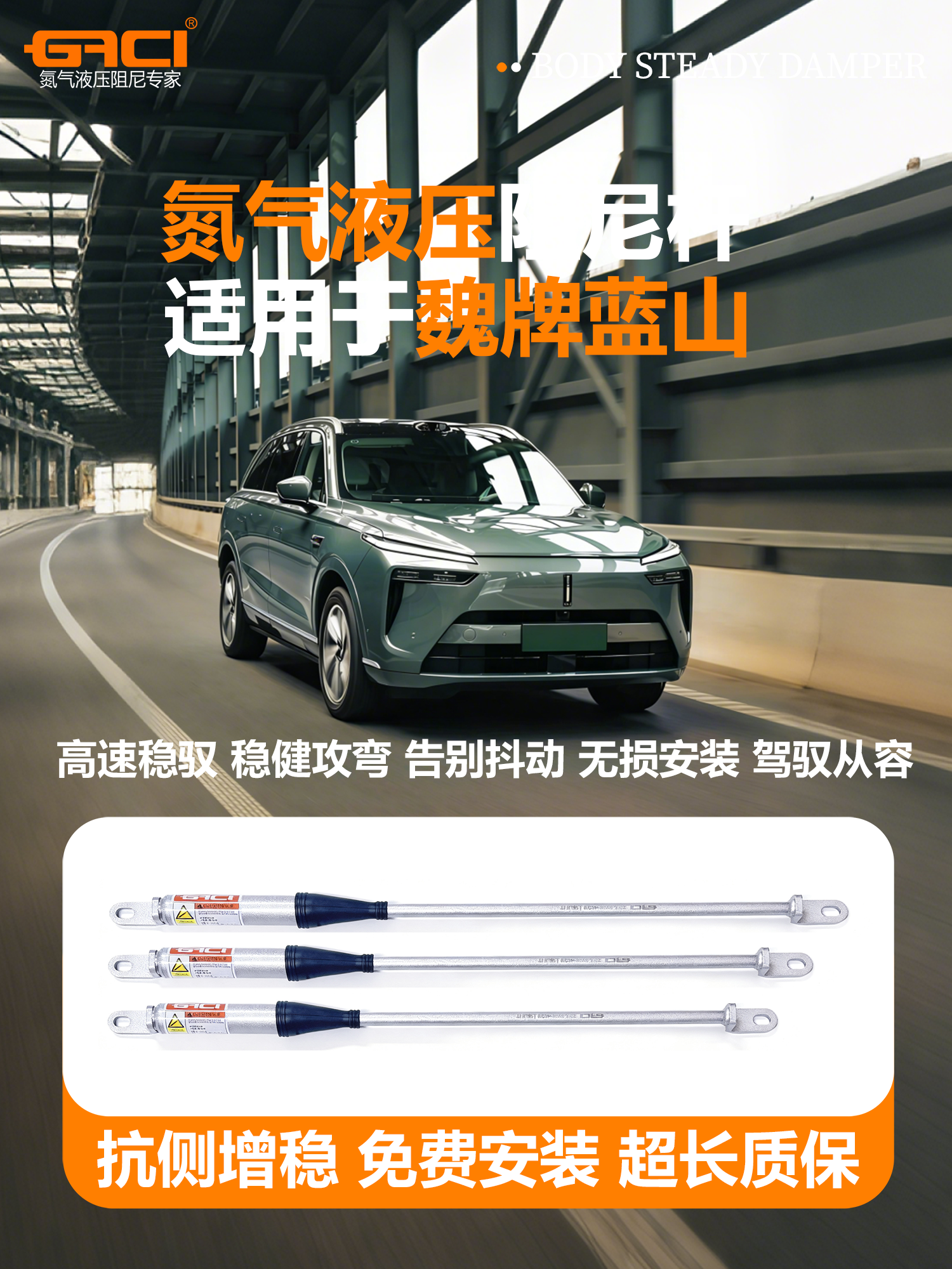 GACI车身平衡杆作为公司的核心产品之一,主要用于加强车身的刚性和自稳定性能。它采用包含高压氮气液压式阻尼系统,能够吸收车身振动的机械能,并以热量的方式散发出去。当车辆转弯或行驶在颠簸路面时,GACI车身平衡杆可以使短时间的剧烈振动能量转化为长时间散发的缓和热量,快速稳定车身,增加车辆的安全性。