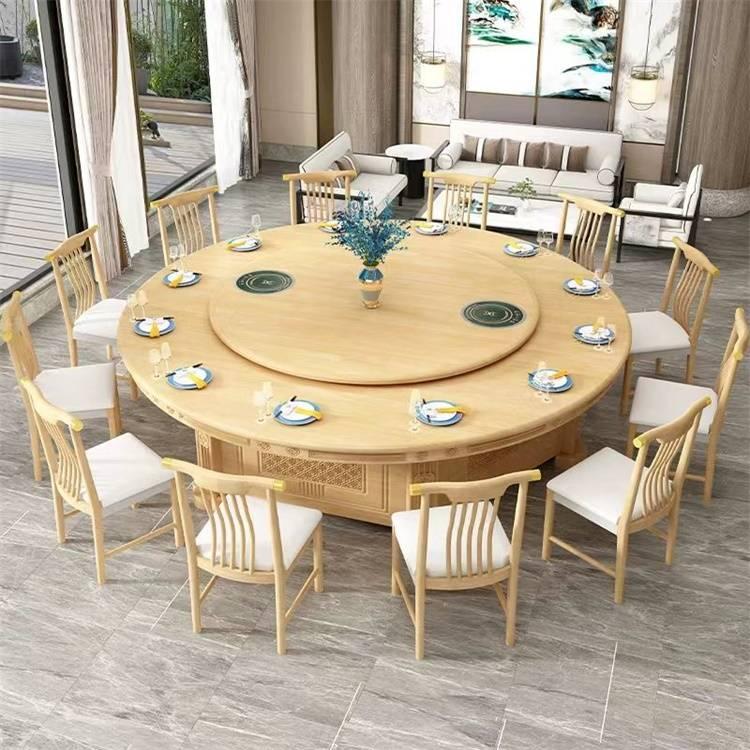 火锅桌椅(新中式,仿古)采用实木 + 大理石嵌入式电磁炉,能精准控温(多档调节),桌面承重≥80kg。关键材质与工艺上,使用北美白蜡木等优质实木框架,天然大理石台面,环保水性漆。电磁炉有自动断电保护,边角圆润设计,防水防烫处理。