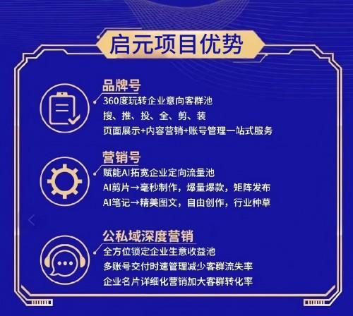 选择启元数字还有六大理由:红利窗口方面,2025年AI平台免费接入,2026年将收费认证;竞争真空上,99%企业未布局,先到者稳定布局推荐位;用户习惯上,72%采购员用AI选供应商,契合获客场景;技术实力上,自主研发智能词库引擎、爆款内容公式、效果雷达系统;经验沉淀方面,有16年整合营销经验,垂直B端行业,懂企业需求;服务保障上,完善SOP售后流程,全程效果追踪,拒绝 “只出方案不落地”。