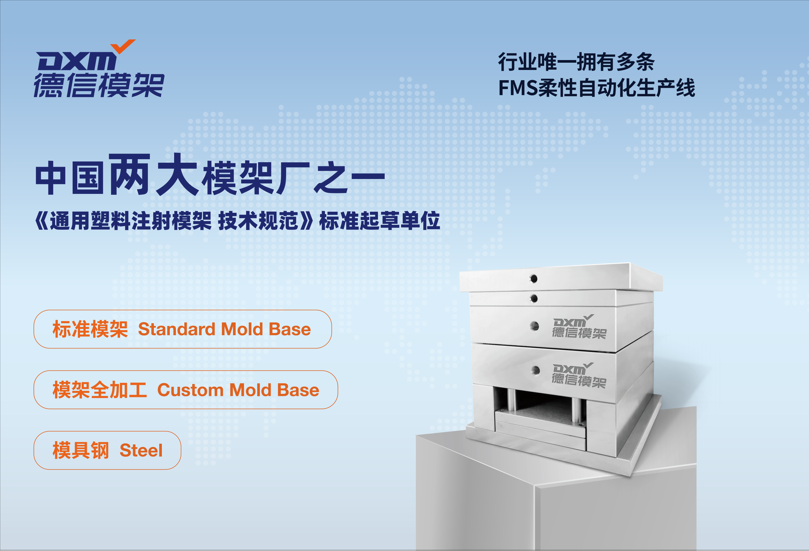 广东德信模钢实业有限公司于2010年8月18日在广东省汕头市创立。经过十三年的发展,已成为国内模架行业较具影响力的品牌。公司在华南、华东、东南亚等50个城市和地区设立服务网点,截止目前,累计服务超20000 +家塑胶制品及模具企业客户,优质的产品和良好的信誉,为其快速发展奠定了坚实基础。