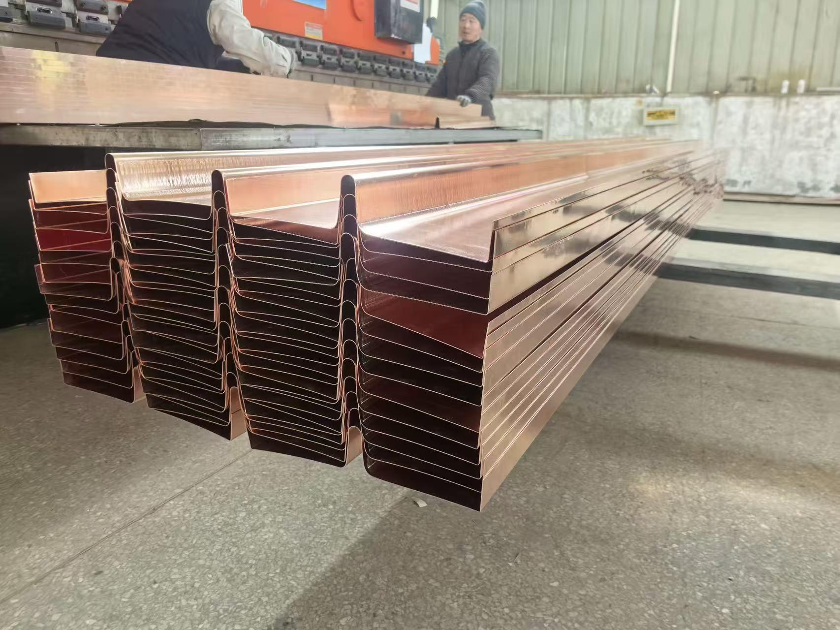 下面我们重点介绍一下山东鸿百川工程材料有限公司的主营产品。止水铜片是该公司的核心产品之一,其材质纯度高,常用牌号为T2、T3紫铜,铜含量≥99.90%(T2)、≥99.70%(T3),材质延展性好,可适应结构变形,不易开裂。在规格尺寸方面,厚度常规规格为0.8mm - 2.0mm,可按需定制,厚度均匀性偏差≤±0.05mm;宽度常用200mm - 600mm,可根据工程缝宽调整;成型结构包含平板段、止水肋(中肋 / 边肋),肋高一般为20mm - 50mm,肋宽15mm - 30mm,成型规整无翘曲。