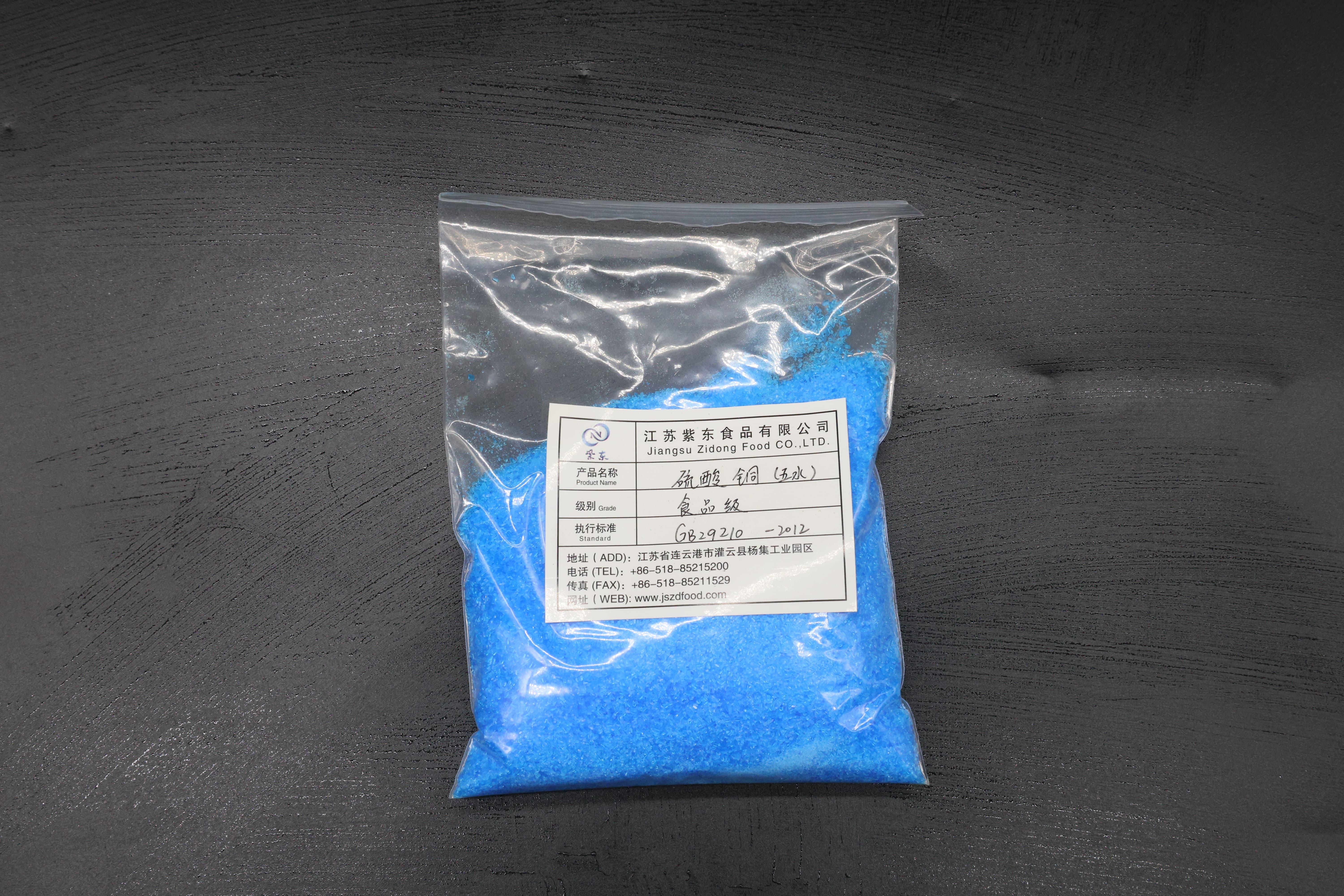 江苏紫东食品有限公司生产的硫酸铜产品具有诸多特点。从质量上看,公司严格把控生产工艺,确保产品的纯度和稳定性。其无水硫酸铜和五水硫酸铜都经过了严格的质量检测,符合相关的食品添加剂标准。在定制服务方面,公司能够根据客户的不同需求,提供个性化的硫酸铜无水定制服务,满足客户在不同食品生产场景下的使用要求。