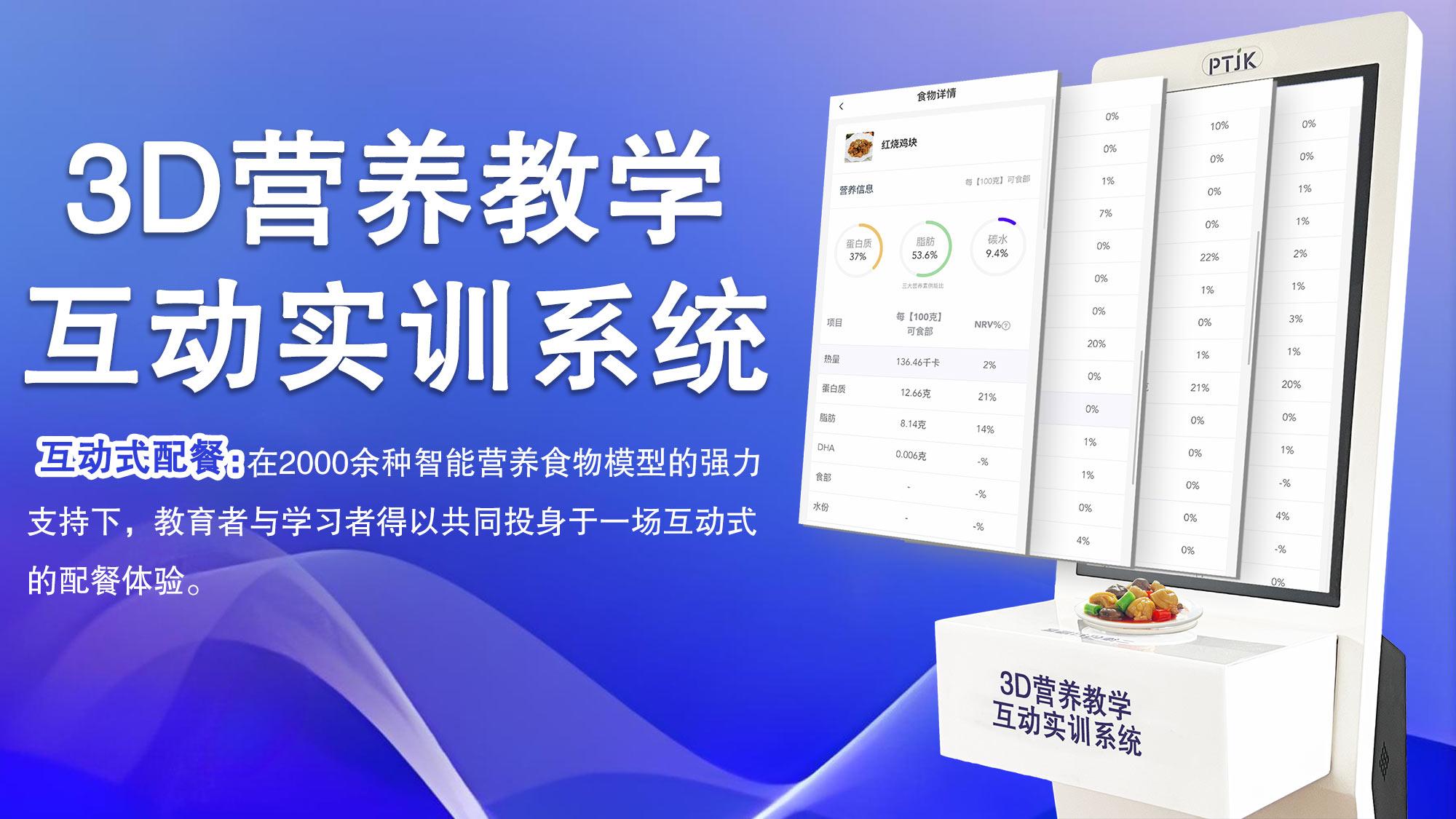 该公司的旗舰产品是3D营养教学互动实训系统,其核心在于打造了一个深度交互的智慧实训环境。系统由后台数据中心、前台应用软件、一台32寸营养分析终端大屏以及80个(可扩展)智能电子食物模型共同组成。