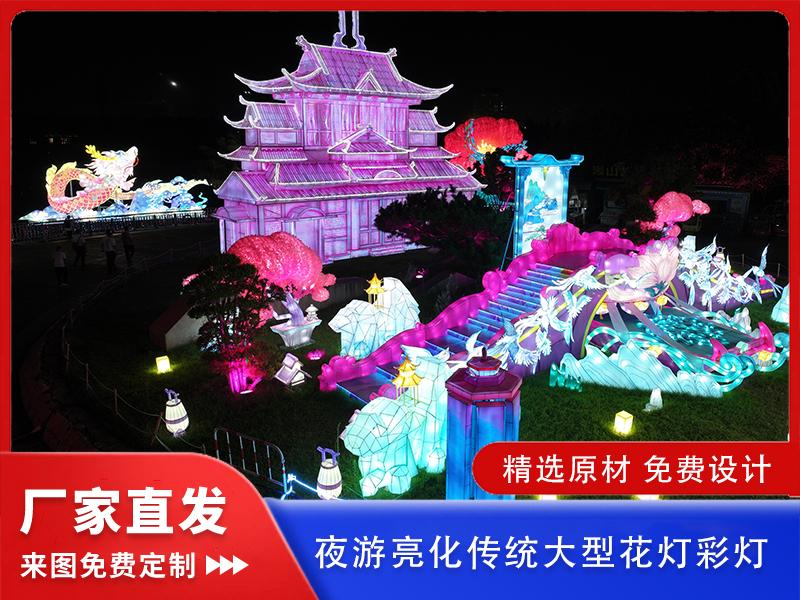 从规模实力来看,该企业拥有30000㎡标准化生产研发基地,配套18000㎡独立产品展厅,是华中地区少有的“生产 + 展示”一体化大型花灯工厂。在职员工达200余人,核心技术团队均为自贡花灯工艺匠人,平均从业年限超10年,涵盖设计、放样、电焊、裱糊、美工、安装等全链条专业人才。其产能也十分可观,单月可生产各类花灯/彩灯500 + 组,大型灯展项目10天就能完成生产 + 安装交付,可承接全国范围文旅亮化、节庆灯展、商业美陈等一站式项目。