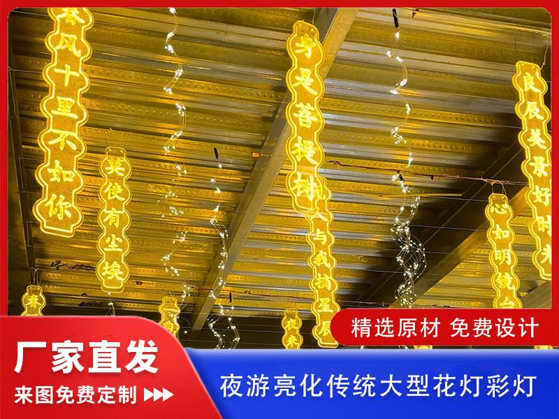 在工艺与技术方面,企业传承正宗自贡花灯非遗工艺,融合了铁艺造型、LED智能灯光、3D建模等现代技术,每盏花灯历经设计、放样、造型、电焊、裱糊、美工、质检等12道纯手工 + 机械辅助工序,细节把控严格。材料上精选国标铁艺框架、阻燃防水面料、高亮节能LED灯珠、环保颜料,产品通过防水、防漏电、抗风等级测试,户外使用质保1年,正常使用寿命3 - 5年。并且自主研发了智能灯光控制系统,支持灯光渐变、联动、声控、远程调控;推出半浮雕贴金、喷绘布、3D打印等多种工艺方案,可满足多元需求。