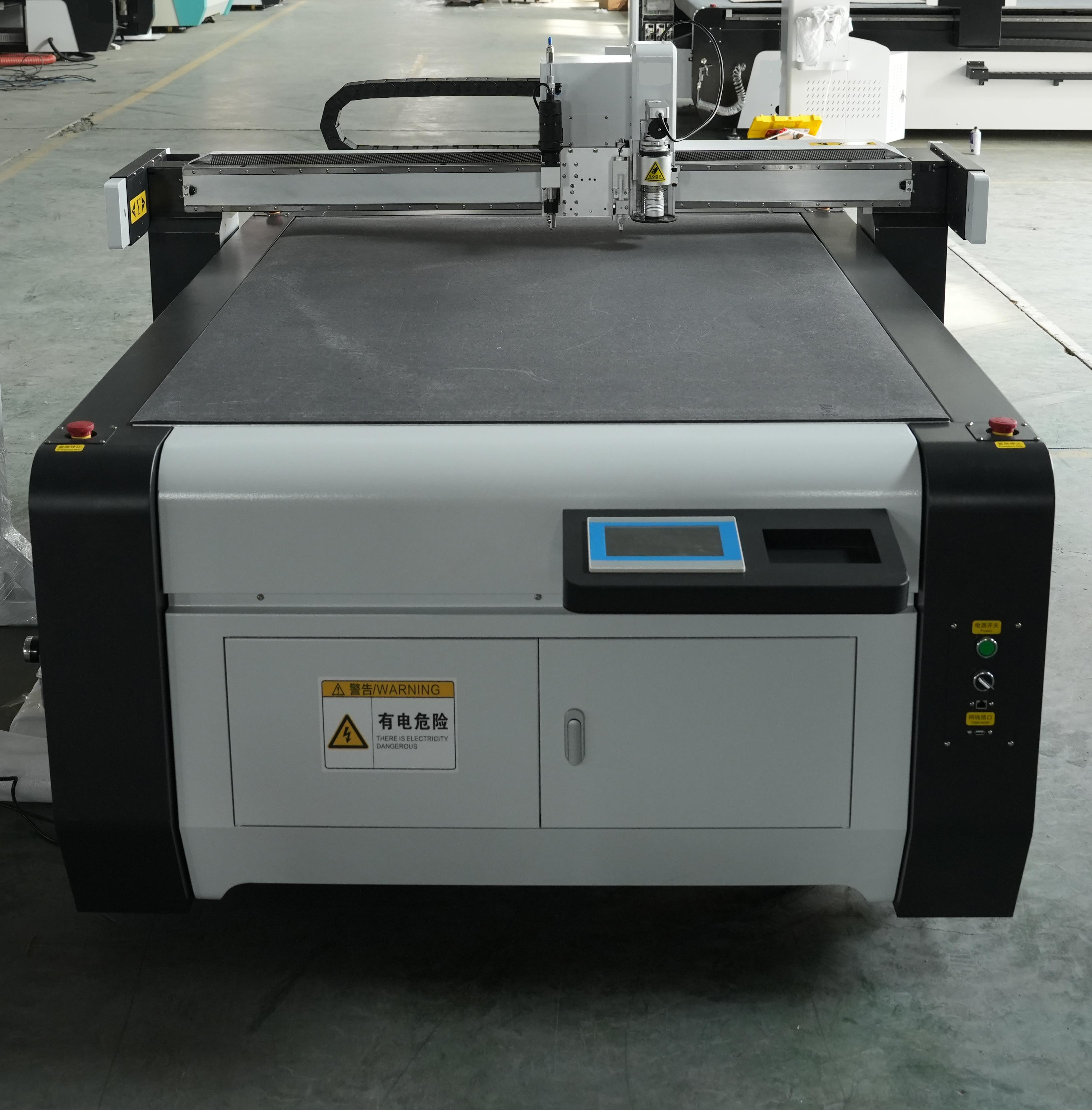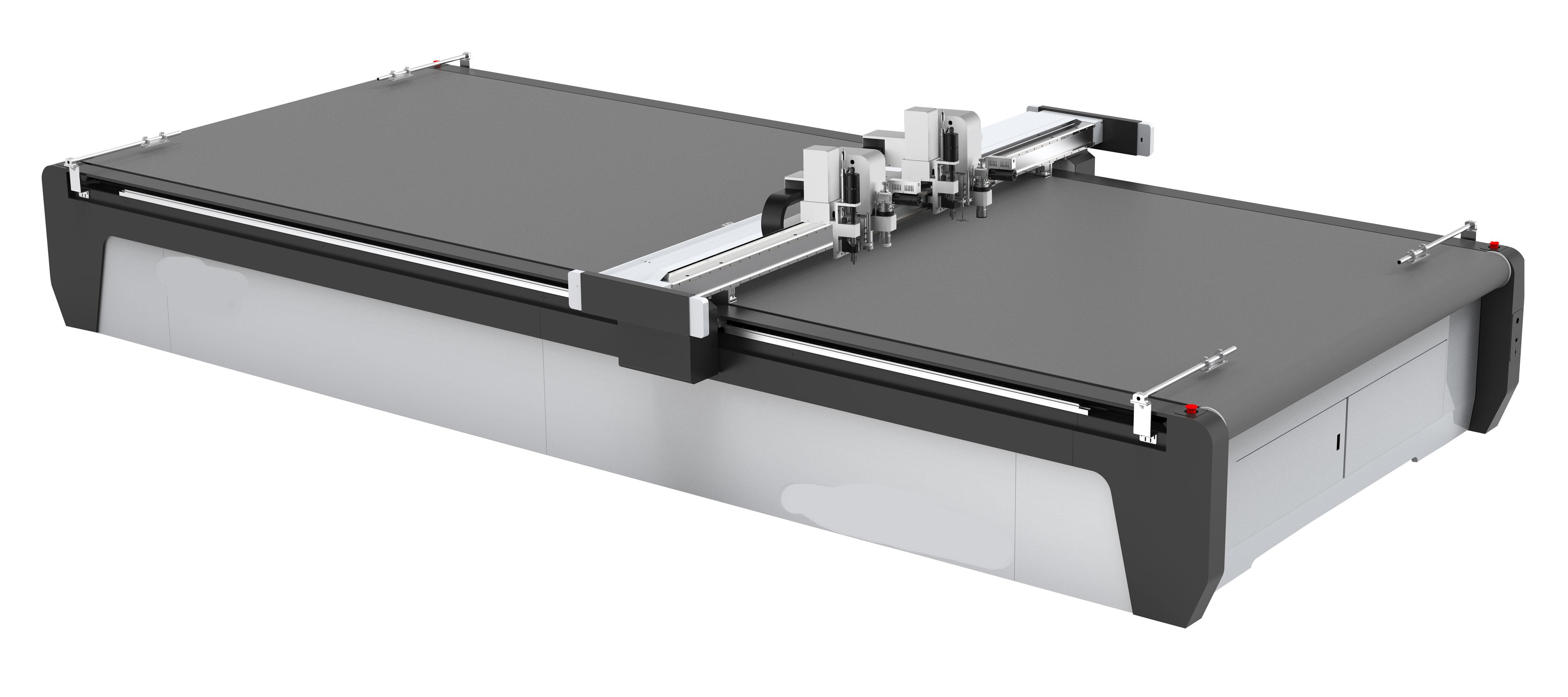 在性能方面,这些切割机更是表现出色。具有微米级切割精度,搭载 CCD 视觉定位系统 + 智能补偿算法,自动识别材料排版与边缘轮廓,切割精度可达±0.1mm;搭配高频振动刀头,裁切边缘光滑无毛刺、无焦边,无需二次修边处理。超高效率裁切,刀头振动频率可达 18000 次/分钟,配合全自动送料系统,裁切速度较传统设备提升 50%以上;支持多层材料同步切割,大幅提升单位时间产能。一机多用全能裁切,集成智能切割、全切、半切、开槽、压痕、打孔四大功能,无需更换刀具即可完成多道工序;兼容碳纤维、PVC 篷布、皮革、珍珠棉、碳纤维布、广告 KT 板等 50 余种非金属材料行业,覆盖广告、包装、汽车内饰、新材料、新能源等全行业需求。