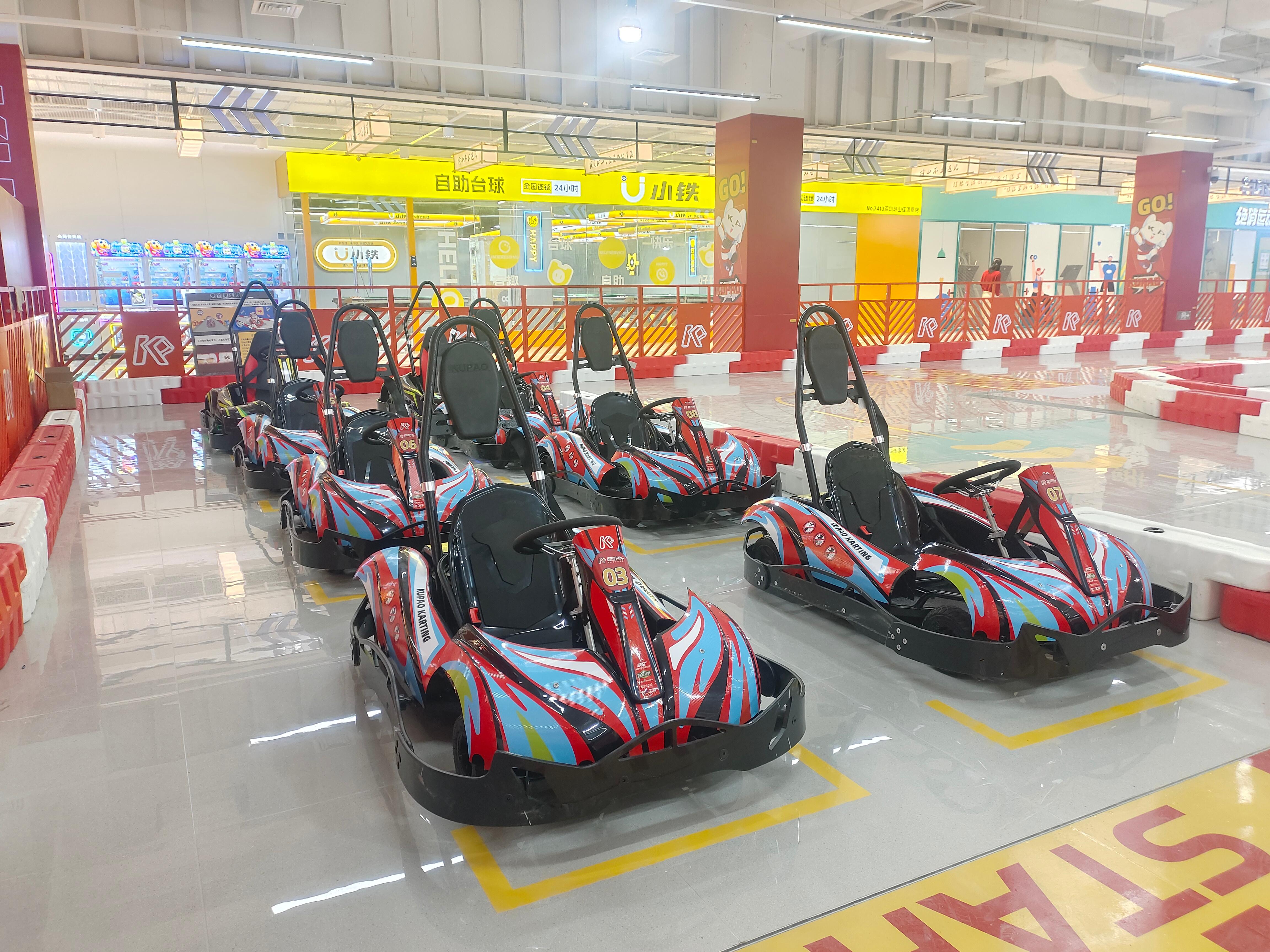 电动卡丁车以电力驱动,具有环保、安静、易于操作等特点。它适合在室内卡丁车场馆使用,为玩家提供安全、便捷的驾驶体验。电动卡丁车的动力输出平稳,加速性能较好,能够满足不同水平玩家的需求。