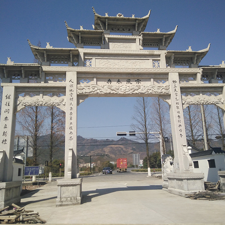 石雕牌坊在园林、寺观、宫苑、陵墓和街道均有建造,逐渐发展成为,我国建筑文化的一道独特景观。如今,在我国各大旅游地方,都可以看到一座座经过精工雕刻后塑立景区门口的石牌坊。这些景区石牌坊,以其特殊的形象、吉祥的寓意,点缀着当地的环境共同构成一幅美丽的画卷,深受人们的喜爱。