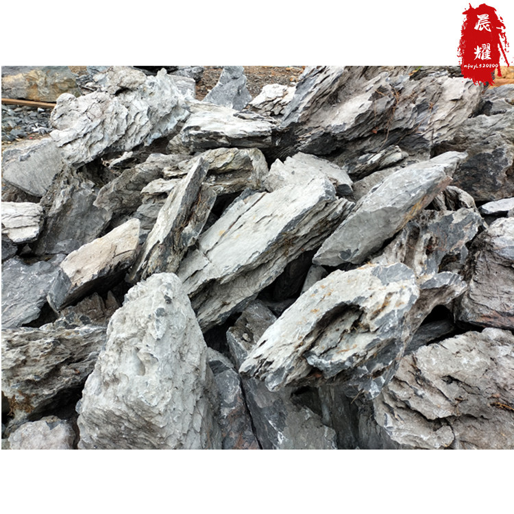 英石系石灰岩。外表锋棱突兀,多见黑色,间有青色、白色,并时见白石筋,扣之有声。又分阴石、阳石两种。阳石是表露于外的,具有皱的特点,按其特征又分为直纹石、横纹石、大花石、小花石、叠石和雨点石等