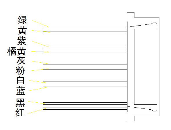 红(+) 黑(-) 黄 绿 粉 灰 蓝 白 橘黄 紫