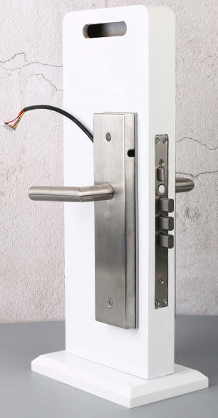 3、点击开锁,蜂鸣器响灯光亮,用手按下拉手,锁具打开,天地杆,侧锁点收起,拉(推)开门,同时将内部传感器的状态上报给FSU。