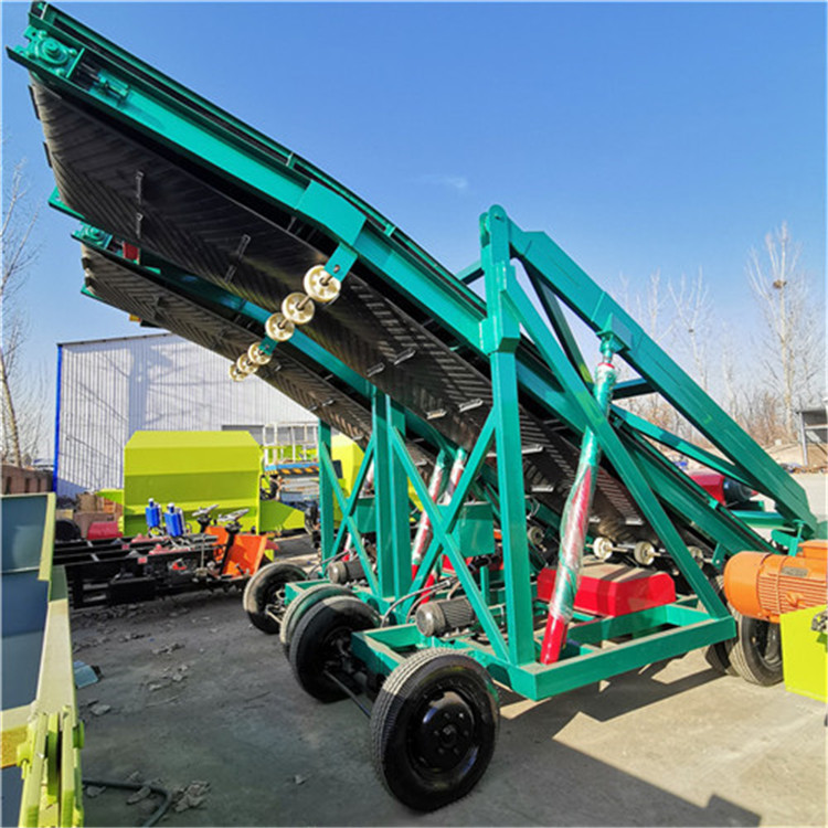 青贮取料机,包括机架,斜梁,从动辊,主动辊,取料杆,调节油缸,输送带,其特征在于:机架底端两侧分别设置有行走轮,机架中部设置有斜梁,斜梁左端底部设置有从动辊,斜梁右端上部设置有调节油缸,调剂油缸右端设置有推杆,推杆右端设置有主动辊,推杆下端右部设置有导料板,主动辊与从动辊之间设置有输送带,斜梁中部底端设置有若干弹簧,弹簧底端设置有调节辊,调节辊与输送带形成配合,机架上部设置有可转动的取料杆,取料杆与斜梁之间设置有推举油缸,取料杆左端设置有取料辊轮,取料辊轮通过皮带与取料电机相连接,取料辊轮上设置有若干取料刀,取料杆左部上端设置有辅助电机,辅助电机左侧中部设置有转轴,转轴上设置有螺旋桨叶。