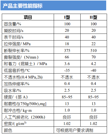 4、防水性能优良--涂层致密连续、无接缝、高弹性,能在风吹雨淋日晒的情况下保持良好防水性能。