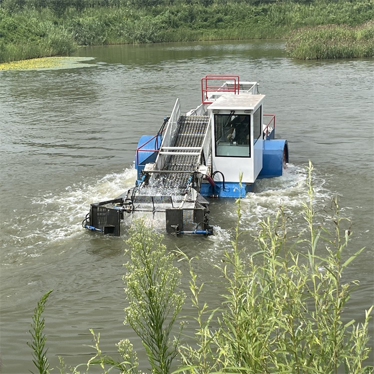 割草船,一种适用于中小型湖泊、河道、人工湖等城市园林景区的现代化水草、水葫芦收割、运输设备。割草船是一种集割草、聚拢、打捞、滤水、输送、卸载等于一体的现代化水草、水葫芦收割设备。