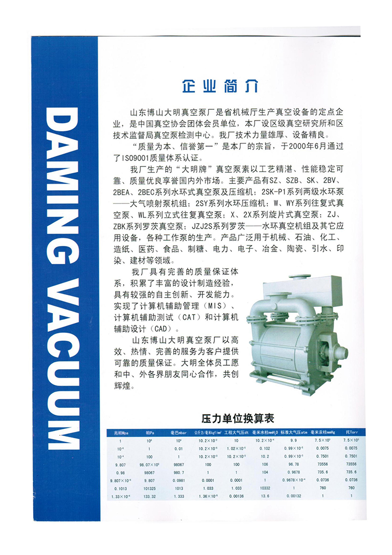 非常荣幸您选择山东博山大真空泵厂生产的真空泵
