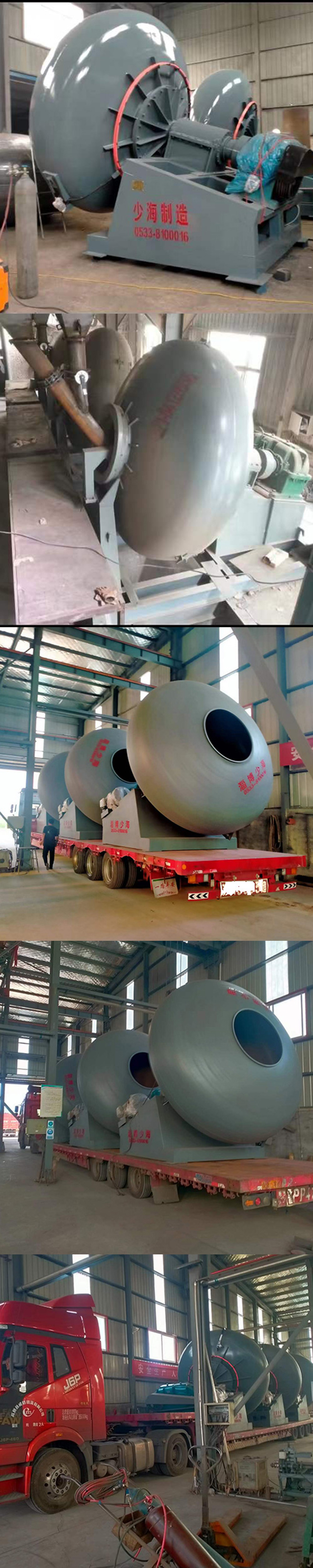 我公司在借鉴国内外造粒工艺设备基础上,与山东理工大学及陕西省轻工设计院联合开发的新型石油支撑剂造粒机,改变了其传统的传动支撑结构,取消了齿圈,托轮,减少了车间噪音,提高了造粒机的使用率,降低了造粒机使用维护费用。该造粒机并实现锅体自动放料及主轴内轴承自动加油,该产品已荣获国家三项专利,并通过有关部门技术鉴定(该产品达到国内较大规格,设计新颖,性能稳定可靠,在产品结构、传动系统、运行噪音、传动部位密封性能及运行费用等方面具有重大创新,达到国内较高水平)此造粒机并已在全国各厂家广泛推广使用,深受用户好评。