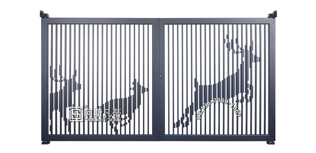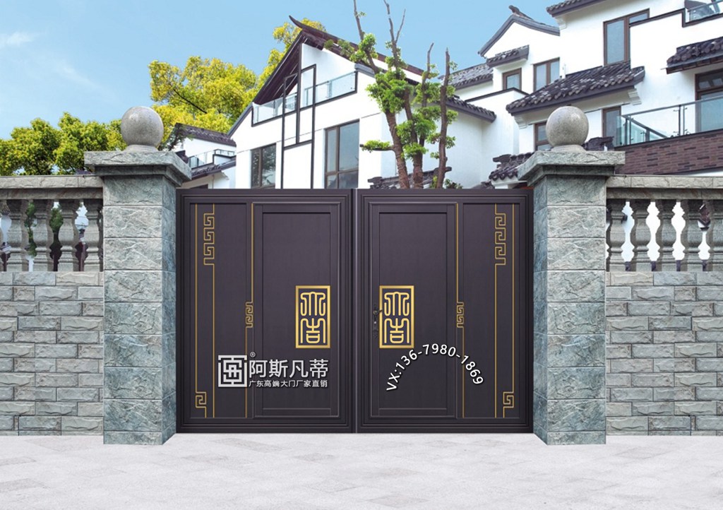 极简主义的主要风格在于实用美观,别墅大门坚固耐用,大门的主框架是一个大尺寸的主框架,然后用铝艺配件将焊接直接嵌入框架中。这种别墅大门质地坚硬,,很结实,不会轻易变形。