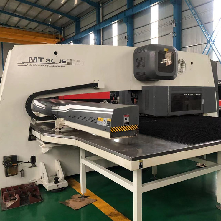 出售转让_高性价比_精品二手金方圆MT300E 伺服 数控转塔冲床 数控冲床 金方圆产,型号:MT300E,成色:9.5成新!全电伺服冲,冲压能力:30吨,32工位,2旋转工位, 伺服式,加工尺寸:1250*5000MM,大版面,2020年出厂 ,该机为全电伺服式冲床,更快,更省电,可以进行滚筋,打标,刻字等特殊工艺加工!每台设备到店都要进行30多项检测,各项功能性能达到新机精度方可出售!设备已调试完毕,可现场试机,现场打板,现场尺测精度,保证设备正负十丝以内的新机精度。所售设备我公司免费安装、调试、培训员工、保修三个月。 廊坊静德数控设备有限公司 销售顾问:田永强