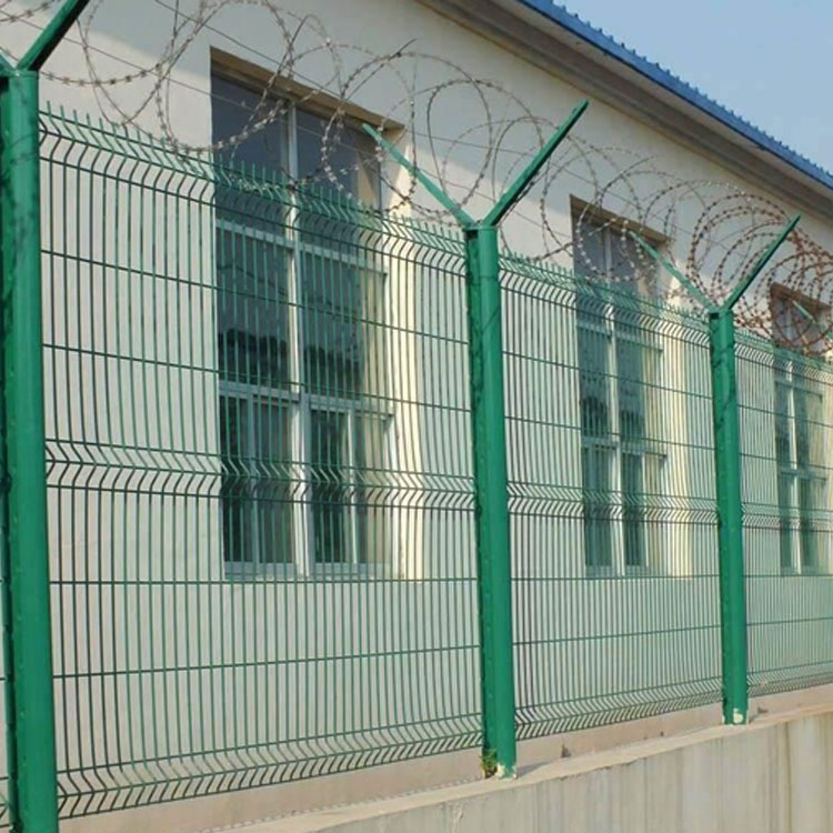 机场围界又称作“Y型安全防御护网”,是由V型支架立柱,加强型焊接片网,安全防盗连接件和热镀锌刀片刺笼组成强度和安全防御性级别很高。近年来,被广泛应用在机场等高安全场所。如果在机场护栏网顶部加装刀片刺丝、刀片刺绳后又很好的增强了安全防护性能。机场护栏网造型美观、花色多样,既起到围栏作用,又起到美化作用。由于具有安全性高、防攀爬能力好,网片连接方式采用特制SBS紧扣件,有效防止人为的破坏性拆卸,横向四道折弯加强筋,使网面强度显著增加。