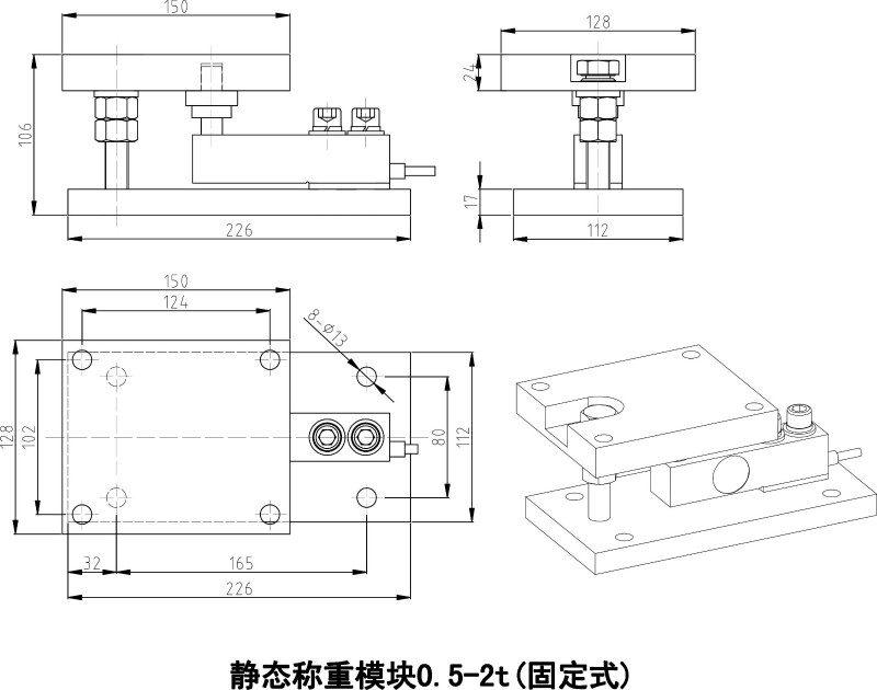 静载称重模块适用于只受垂直作用力,而水平作用力较小的场合,静载称重模块可以非常方便地安装在各种形状的容器上,成为一个称重系统。