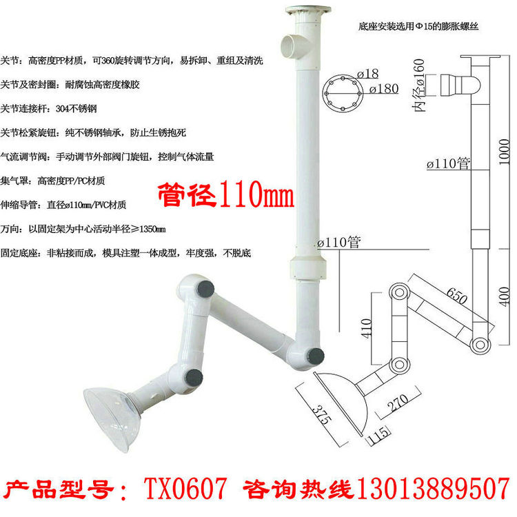 配有360°旋转装置:以固定架为中心活动半径可达1600mm