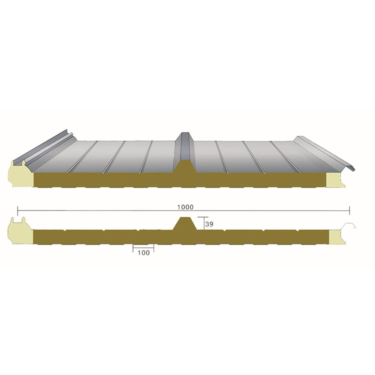 新型防火岩棉/玻璃丝棉屋面夹芯板 (聚氨酯封边)