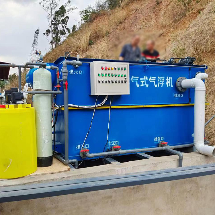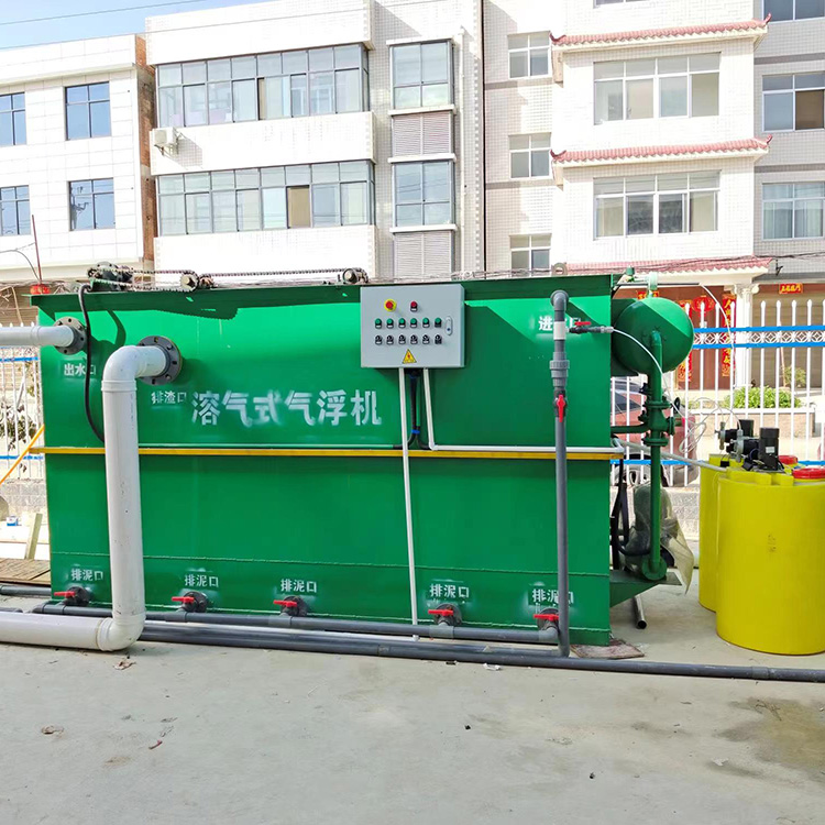 溶气气浮机采用微气泡发生器,代替传统的引气设备向水中溶气,并在气浮区域内安装若干斜管组,包括箱体、刮渣机、螺旋出料机共同组成一个完整气浮净水装置。