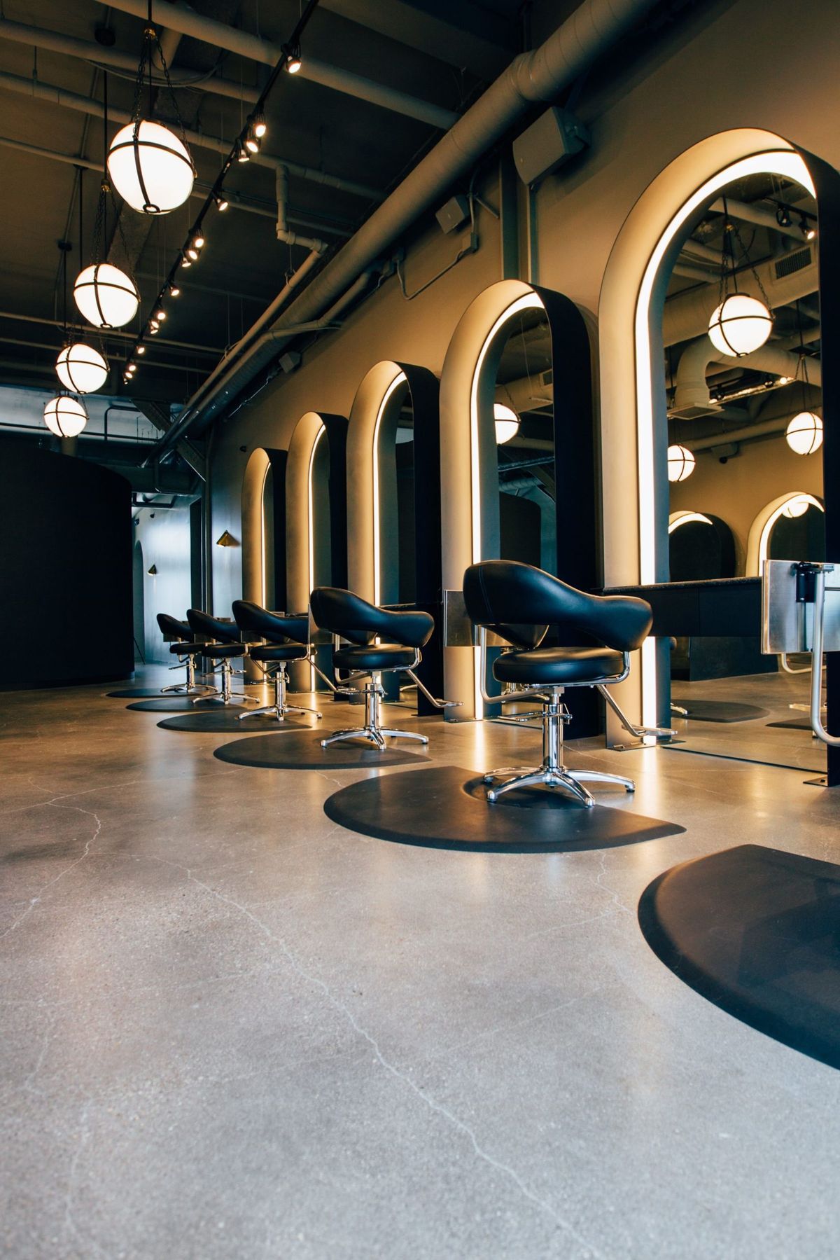 工业风格的美发店装修追求简约、原始和实用,常常运用暖色调和金属元素。墙面可以选择砖墙质感或混凝土材质,搭配暗色调的家具和装饰品,以创造出独特的工业风格美发店。