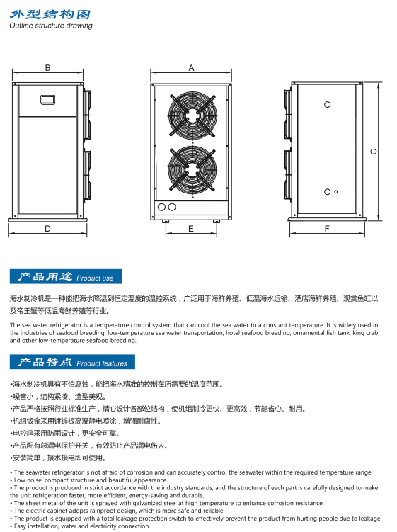 主营产品有:工业冷水机系列、油冷机系列,冷库机组系列、海水制冷机系列、工业降温空调系列,承接冷库安装、工业冷水机降温、海鲜养殖等项目。